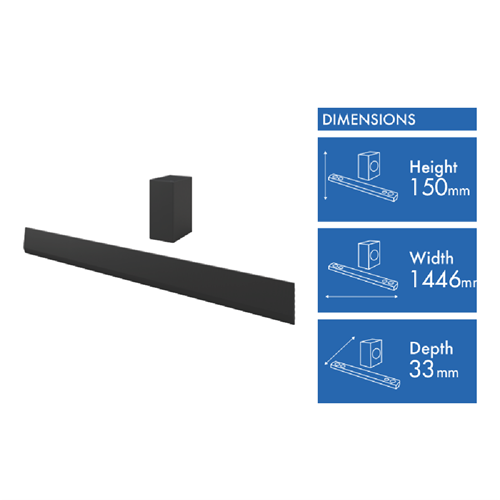 Product Width (mm) Soundbar 1446/ Subwoofer 180