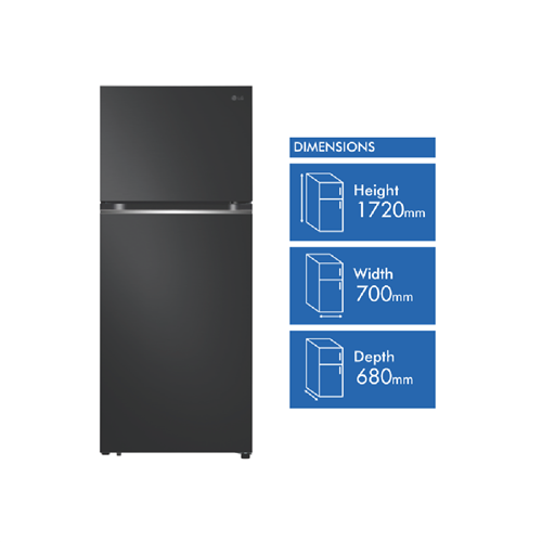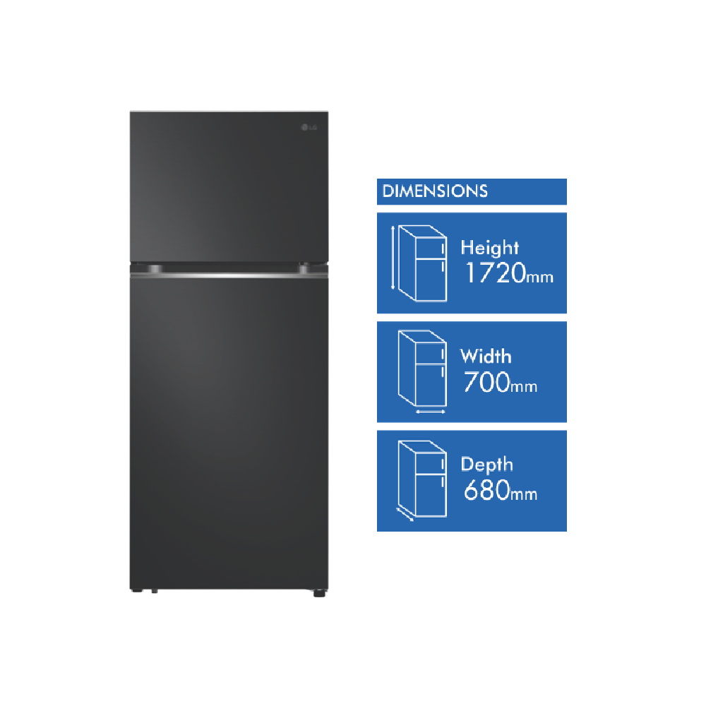 Tired of your fridge feeling a bit cramped? The LG 375L Top Mount Refrigerator (GT-5MB) could be your perfect solution. With a spacious 375L total capacity including a 285L fridge and 90L freezer you'll have plenty of room for all your fresh and frozen favorites. The sleek matte black finish adds a modern touch to your kitchen while features like DoorCooling+ Multi Air Flow and the Fresh Zone Crisper keep your food fresher for longer. Plus hidden hinges give it a seamless look. Measuring 700mm wide 1720mm high and 680mm deep it fits nicely in most spaces. Enjoy peace of mind with LG's 2-year warranty on the GT-5MB model.