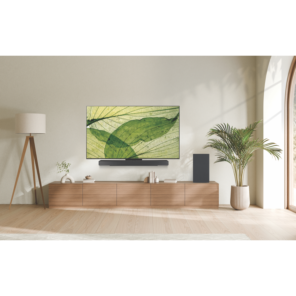 This LG 83 OLED EVO C5 brings the cinema right to your living room. With its massive 83-inch screen and 4K Ultra HD resolution you'll see every detail in stunning clarity. The OLED evo technology delivers brighter more vivid colours that pop off the screen. Gamers will love the 120Hz refresh rate and 1ms response time for smooth lag-free action. Plus it's compatible with both G-Sync and FreeSync. The a9 AI Processor 4K Gen8 upscales content beautifully while Dolby Vision and Dolby Atmos create an immersive audiovisual experience. Control it all with your voice using ThinQ or Microsoft Copilot. With a 5-star energy rating you can enjoy top-notch entertainment without worrying about the power bill. This smart TV runs on webOS 25 and supports all your favourite streaming apps. At 33kg with the stand it's a substantial centerpiece for any room. The LG OLED83C5PSA comes with a 1-year warranty for peace of mind.