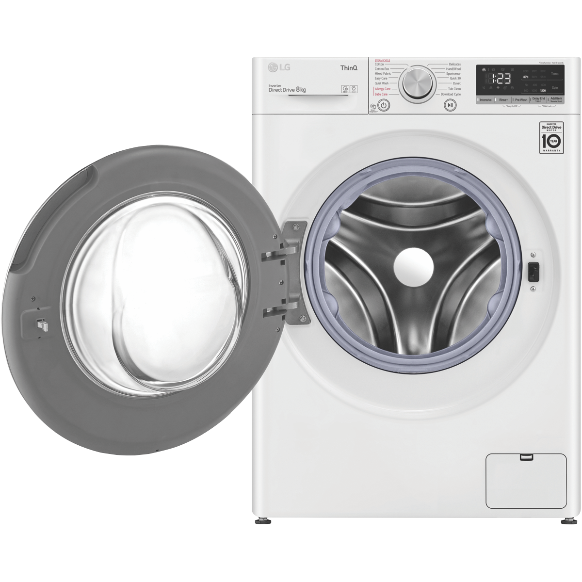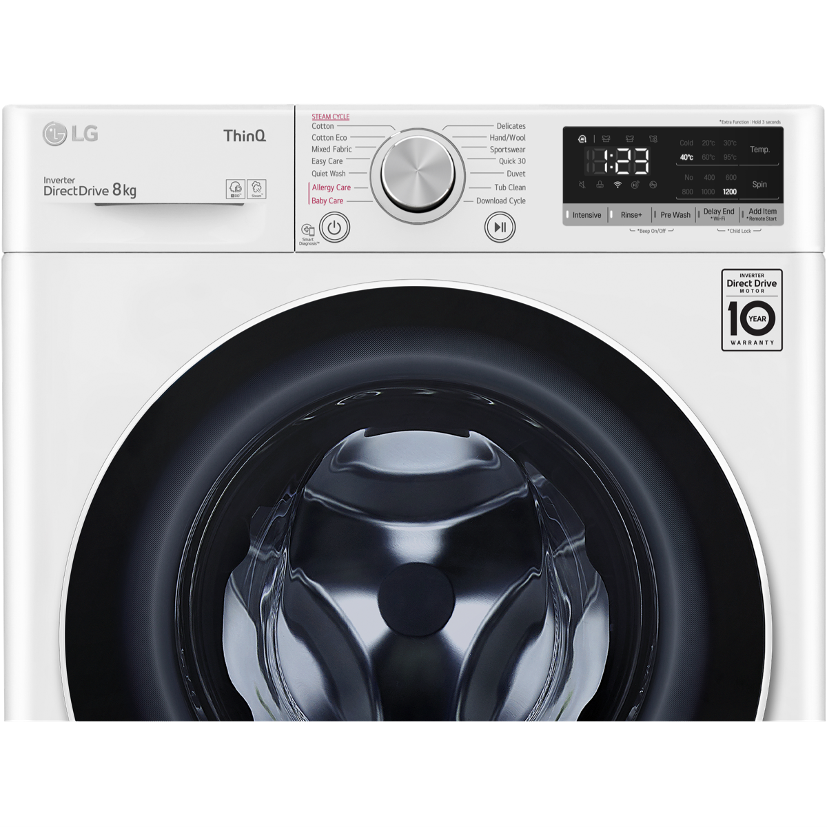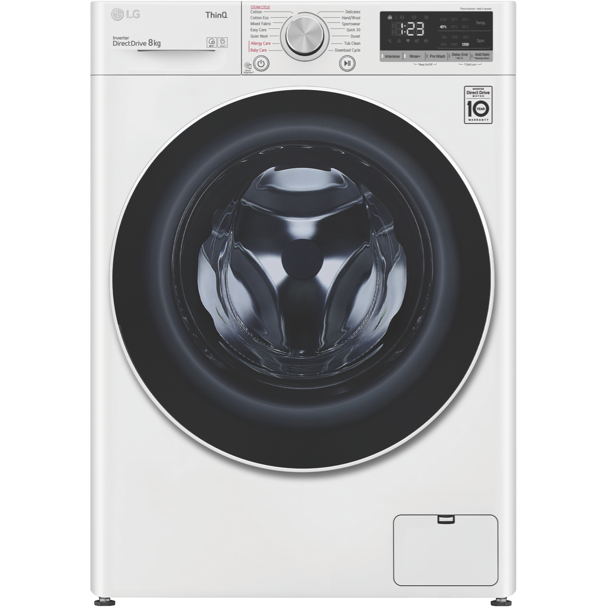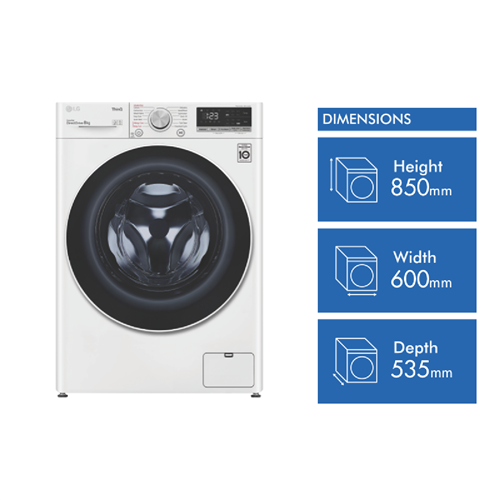 Transform your laundry experience with the LG 8kg Front Load Washer. This sleek white washing machine delivers powerful cleaning for all your fabrics while using less water and energy. With an impressive 4.5 star energy rating and 4 star WELS water rating the LG washer is engineered for efficiency. The generous 8kg capacity caters to medium sized loads while the 1200rpm spin speed dries clothes faster. Choose from 11 versatile programs like Cotton Delicates Handwash and Allergy Care to handle any fabric type. Innovative features such as Add Item Pre Wash and Delay Start provide extra convenience. LG's smart ThinQ technology allows you to control and monitor cycles remotely. At under 600mm wide this space-saving front loader fits into tight laundry rooms. Rest assured with LG's 2 year warranty. Enjoy squeaky clean fresh clothes while saving water and power with the LG 8kg Front Load Washer. The manufacturer's part number for this product is WV5-1208W.