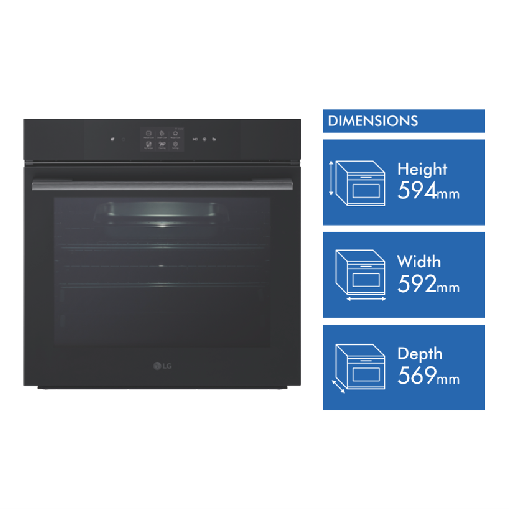 Discover a new level of culinary excellence with the LG 60cm Steam Oven BO609B2BG4. This sleek black matte glass steam oven boasts an impressive 76L capacity and 24 versatile oven functions including air fry sous-vide steam baking and more. The intuitive touch controls and Wi-Fi connectivity make meal prep a breeze while the InstaView feature lets you check on your cooking with just a knock. Rapid preheat and delay end options streamline your cooking experience and the included accessories like flexible telescopic rails wire racks deep pan perforated tray and meat probe expand your culinary possibilities. With its easy 10-minute chemical-free cleaning and 4-layer glass door the LG BO609B2BG4 is designed for effortless maintenance. Backed by a 2-year manufacturer's warranty this 3100W electric steam oven is the perfect addition to your kitchen. Product dimensions: 592mm (W) x 594mm (H) x 569mm (D). Installation by a licensed professional required.