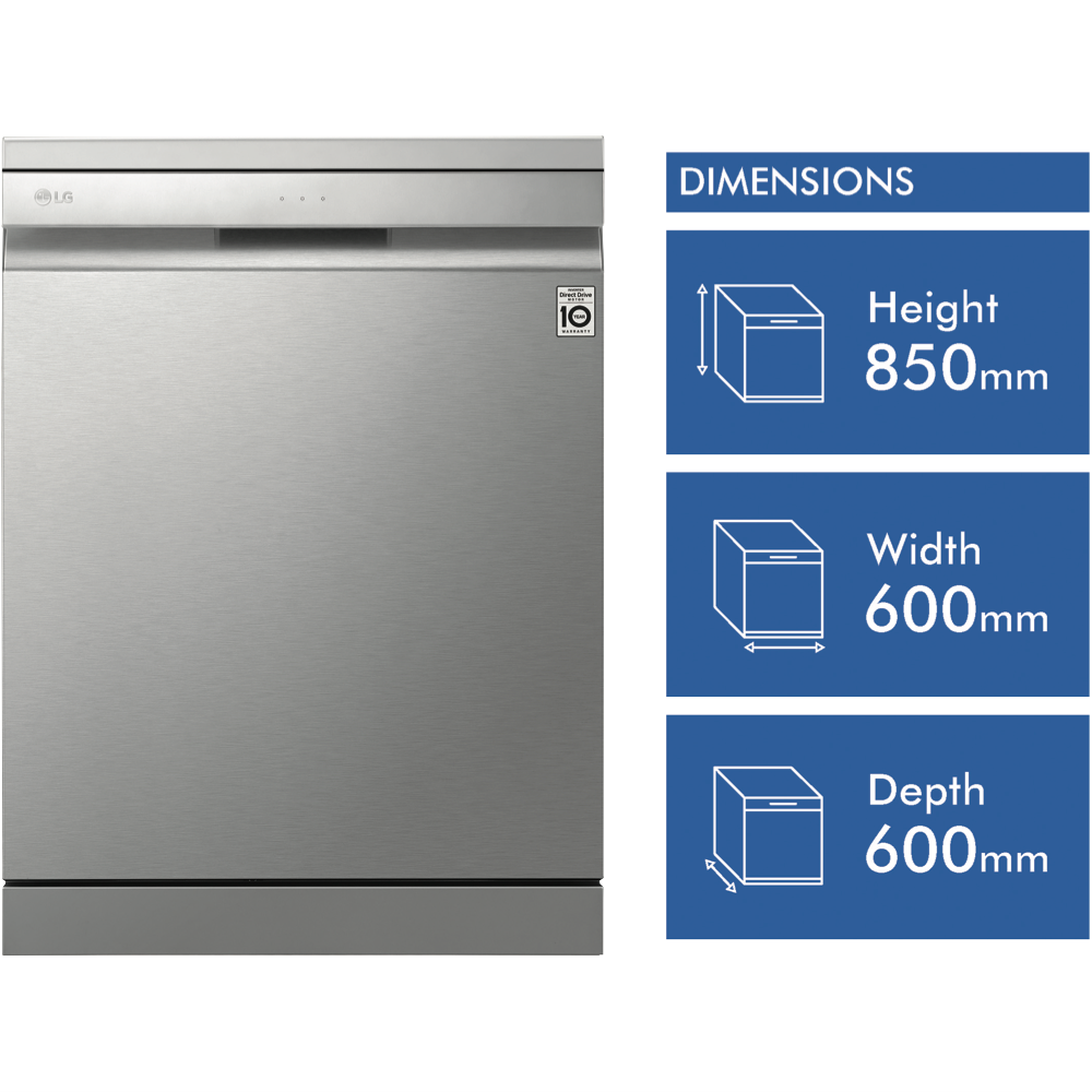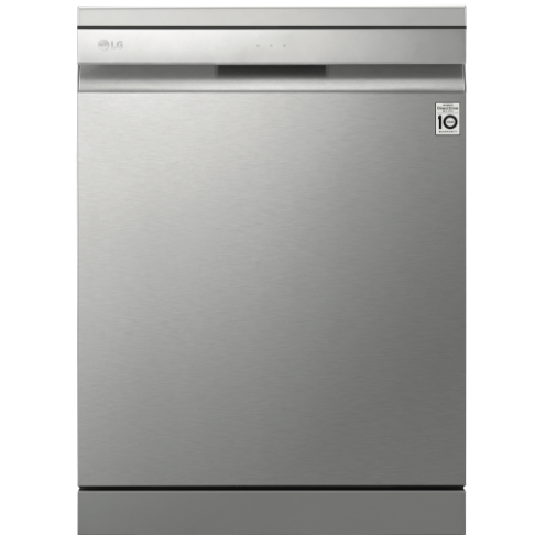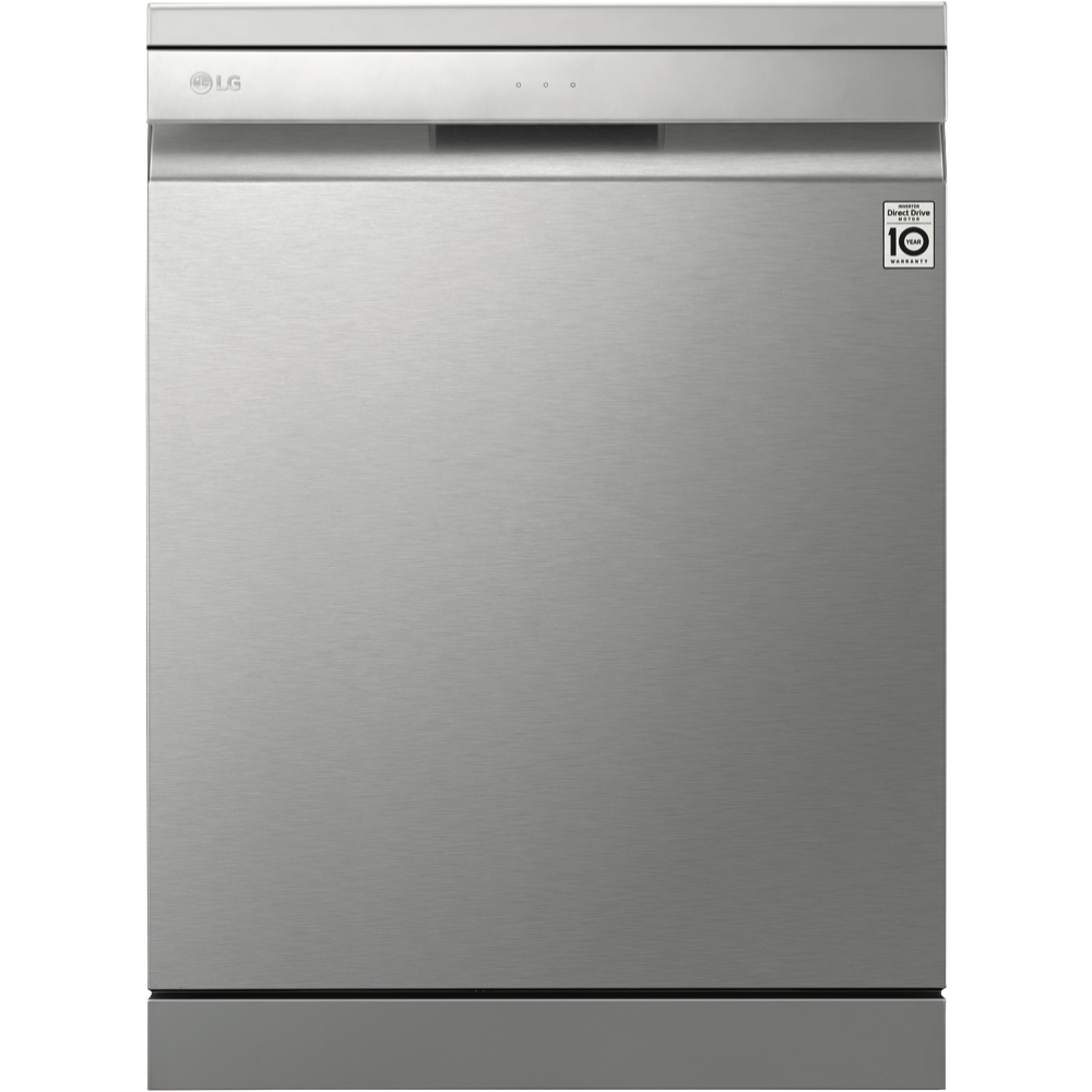 Wash up quick with the LG QuadWash Stainless Steel Dishwasher XD3A15NS. A minimalist exterior couples with a subtle micro LED display to create a statement most dishwashers can't match. Clean from multiple angles thanks to QuadWash's four rotating blades including two oscillating nozzles that pulse and deliver water thoroughly. Select Turbo Cycle to wash light or moderately dirty dishes in 59 minutes(1). LG's own Direct Drive Motor is made with less moving parts for reliable and quiet cleaning and is also backed by a 10 Year Warranty(2). Choose Dual Zone Wash to lightly clean delicate dishes and heavily scrub dirty pots and pans during the same wash. Load the dishes your way with folding tines an adjustable height upper rack and the Glide Rail making drop off and pickup smooth no matter how heavy the load is. Plus with built-in Wi-Fi you can use the LG SmartThinQ app(2) on your compatible smartphone to download additional programs troubleshoot or receive notifications. Disclaimers: (1) Reduced load size (maximum 10 place settings) required. Cycle is Wash only. (2) 2 years parts and labour plus 8 years on motor (parts only). (3) Compatible smartphone required Android 4.1.2 (JellyBean) or later or iOS 9 or later required for LG ThinQ application.