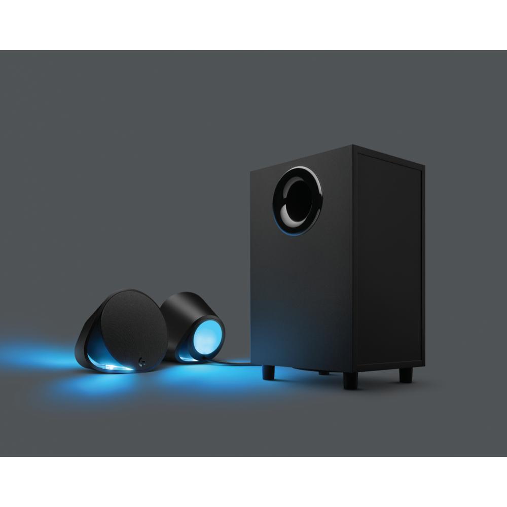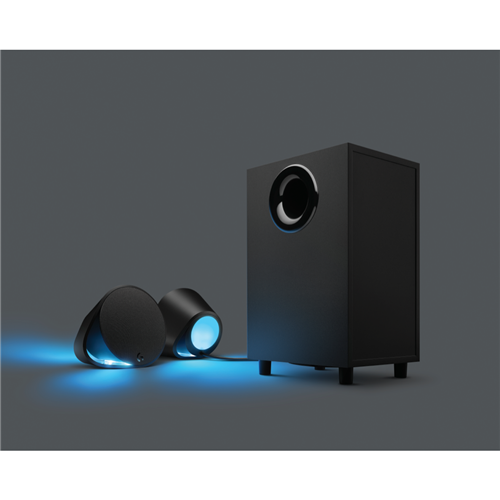 Enjoy enhanced gaming immersion with the Logitech G560 Lightsync PC Gaming Speakers 4125431. Integrated lightsync technology ensures the G560 gaming speakers deliver automatic game driven lighting effects in sync with your game-play clashes.