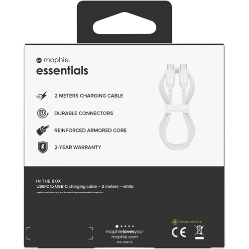 Mophie Essential USB-C-C Cable (60W) Braided 2M White