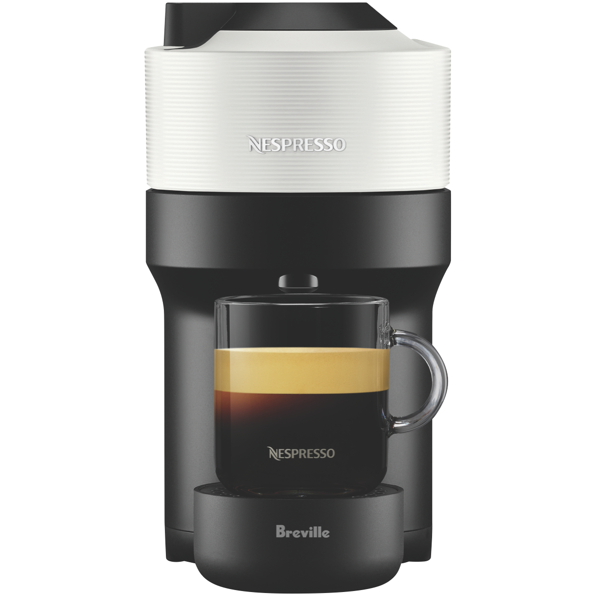 Make barista-quality coffee at home with the Nespresso Vertuo Pop in Coconut White. This compact coffee machine heats up in just 30 seconds and offers four cup sizes from a quick espresso to a full mug. The one-button operation couldn't be simpler - the machine automatically recognizes each capsule and adjusts brewing accordingly using Centrifusion technology. With Bluetooth and WiFi connectivity you can control your coffee from your phone. The 560ml water tank holds enough for multiple drinks while the container stores up to 8 used capsules. It automatically shuts off after 2 minutes to save energy and comes with a 2 year warranty. Model number: BNV120WHT4JAN1.