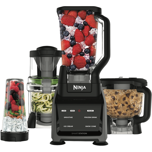 Unlock your inner chef and transform mealtimes with the powerful Ninja Intelli-Sense Kitchen System. This versatile 1200W blender system features Smart Programs designed for optimal results when making smoothies frozen drinks dips purees dough and more. With Total Crushing and Precision Pitcher options 13 speeds and a spacious 2.1L capacity you can blend puree chop mix knead and spiralize ingredients in seconds. The Auto-Spiralizer with interchangeable blades effortlessly creates curly fries or zucchini noodles. With a chute fit for whole fruits and veggies Pro Extractor blades a chopping blade dough blade and single serve blending cup this do-it-all wonder simplifies food prep. Create anything from soups to nut butters shred meats knead pizza dough crush ice and pulverize fruits and veggies with precision. This intuitive system does the thinking for you. The safety locking lid ensures spill-free pouring. Clean up easily with dishwasher safe accessories. Prepare quick weekday breakfasts or craft restaurant worthy creations at home with this versatile time saving kitchen system. Experience the difference intelligent blending makes. The manufacturer's part number for this product is CT682. Bring out your inner chef with the Ninja Intelli-Sense Kitchen System today.