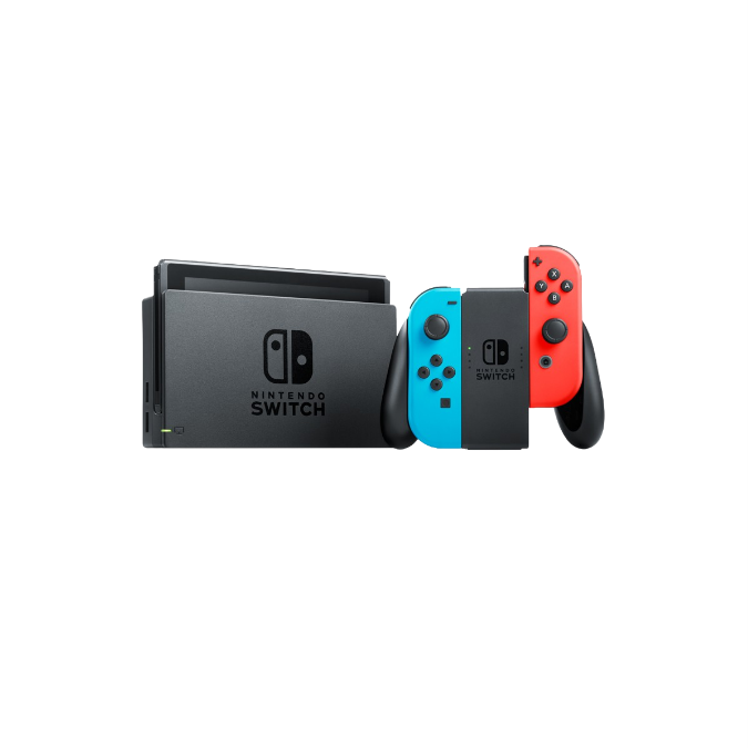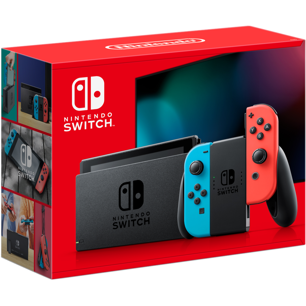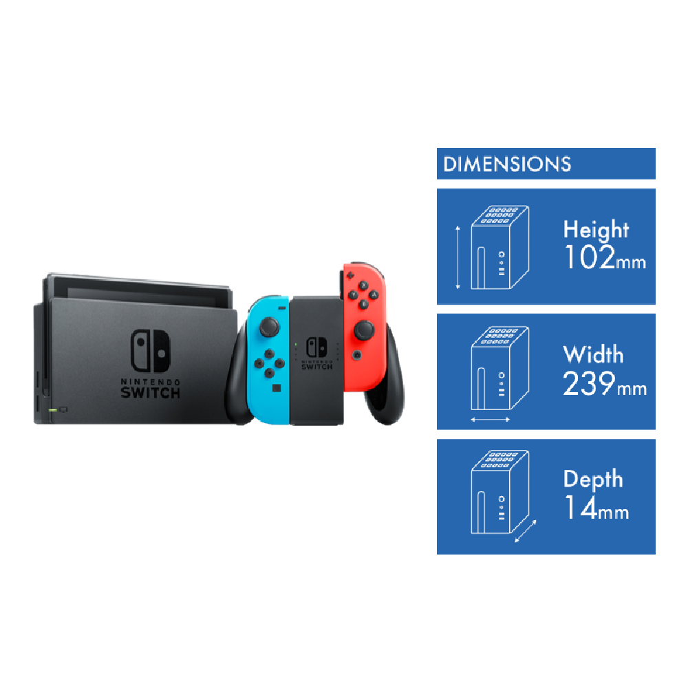 Get ready to play your favorite games anywhere you go with the vivid Nintendo Switch Console in eye-catching neon red and blue. This versatile home gaming system lets you enjoy HD gaming at home or on the go. Simply dock it to your TV to play immersive big-screen games then undock it to keep the fun going in handheld mode with its 6.2-inch LCD touchscreen. Featuring motion controls HD rumble and 32GB of internal storage the Nintendo Switch opens up exciting new ways to game with its Joy-Con controllers. These innovative controllers can be used separately together or shared for multi-player action. Packed with the latest technology the Nintendo Switch console delivers high-definition visuals surround sound audio and compatibility with Nintendo Switch game cartridges for non-stop entertainment. Weighing just 0.39kg with a slim compact design this portable home console goes wherever you do. The manufacturer's part number for this product is 99282. Bring home the all-in-one Nintendo Switch console and experience gaming freedom.