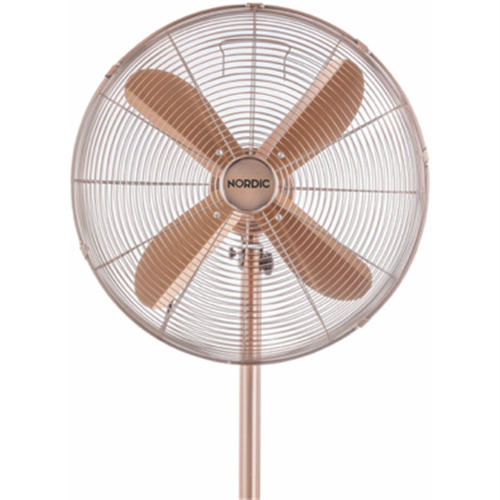Create a welcoming breeze in any room with the Nordic 45cm Copper Pedestal Fan. This stylish fan features a copper finish and adjustable height allowing you to direct the airflow where you need it most. With a 45cm blade span and three speed settings this pedestal fan offers flexibility and customized cooling power. The tilt adjustable head provides directional airflow while the safety fan guard ensures peace of mind. Standing on a sturdy pedestal base the fan can extend up to 130cm to reach your desired height. Equipped with 4 metal blades and a 1 year warranty this fan provides reliable performance and long-lasting durability. Bring versatile efficient cooling to your home with the Nordic Copper Pedestal Fan today. The manufacturer's part number for this product is CFP45. Check out this pedestal fan for your home now.