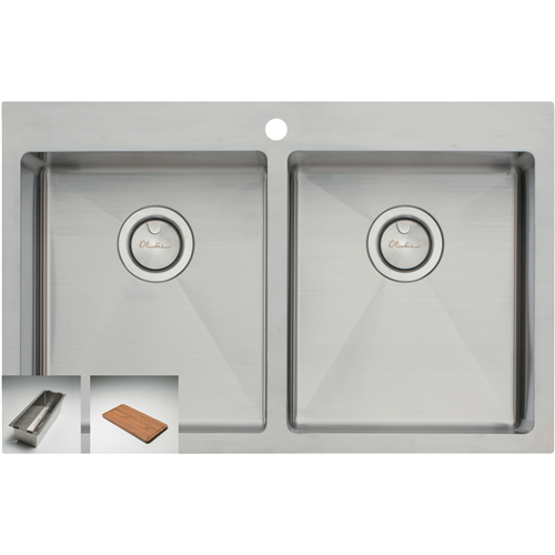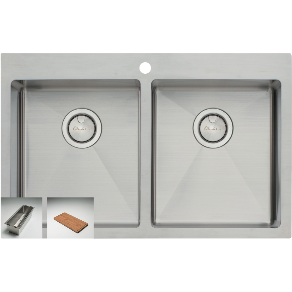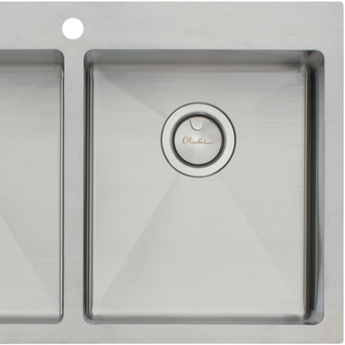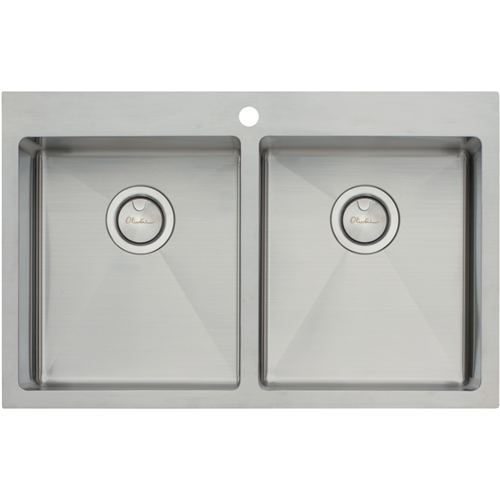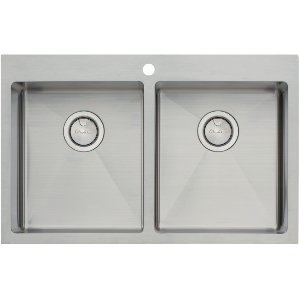 Bring stylish functionality to your kitchen with the Oliveri Apollo Double Bowl Sink. Crafted from durable 18/10 stainless steel this sink features a sleek top mount installation and spacious double bowl design with generous 29L capacity per bowl. The 18mm radius corners and soundproofing ensure a quieter more comfortable washing experience. Complete with a stainless steel colander and bamboo chopping board this sink optimizes your meal prep and cleanup. The stainless steel construction promises long-lasting performance and easy cleaning while the single tap hole allows for flexible faucet placement. With its modern lines and double bowl versatility the Oliveri Apollo sink upgrades your kitchen's style and efficiency. The manufacturer's part number for this product is AP1464. Consider the Oliveri Apollo to add contemporary appeal and handy features to your home.