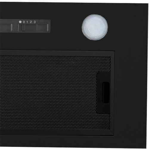 Extract steam and food odours from your kitchen whilst keeping it stylishly on-trend with this matte black Omega 52cm Undermount Rangehood ORU52MB. Integrated within your kitchen cabinetry for a seamless fit the controls on this rangehood are equally minimalist with a slide switch for selecting one of three speeds for your simmering boiling or deep-frying cooking requirements and another to switch the light on or off. Plus two LED lights provide excellent visibility whilst generating very little heat and consuming very little energy. It has a 683m3/hr net extraction capacity. Keeping the extraction of your rangehood running optimally is easy thanks to the removable washable filter. An effortless match to any new black appliance this Omega Rangehood is perfect for any kitchen upgrade or build.