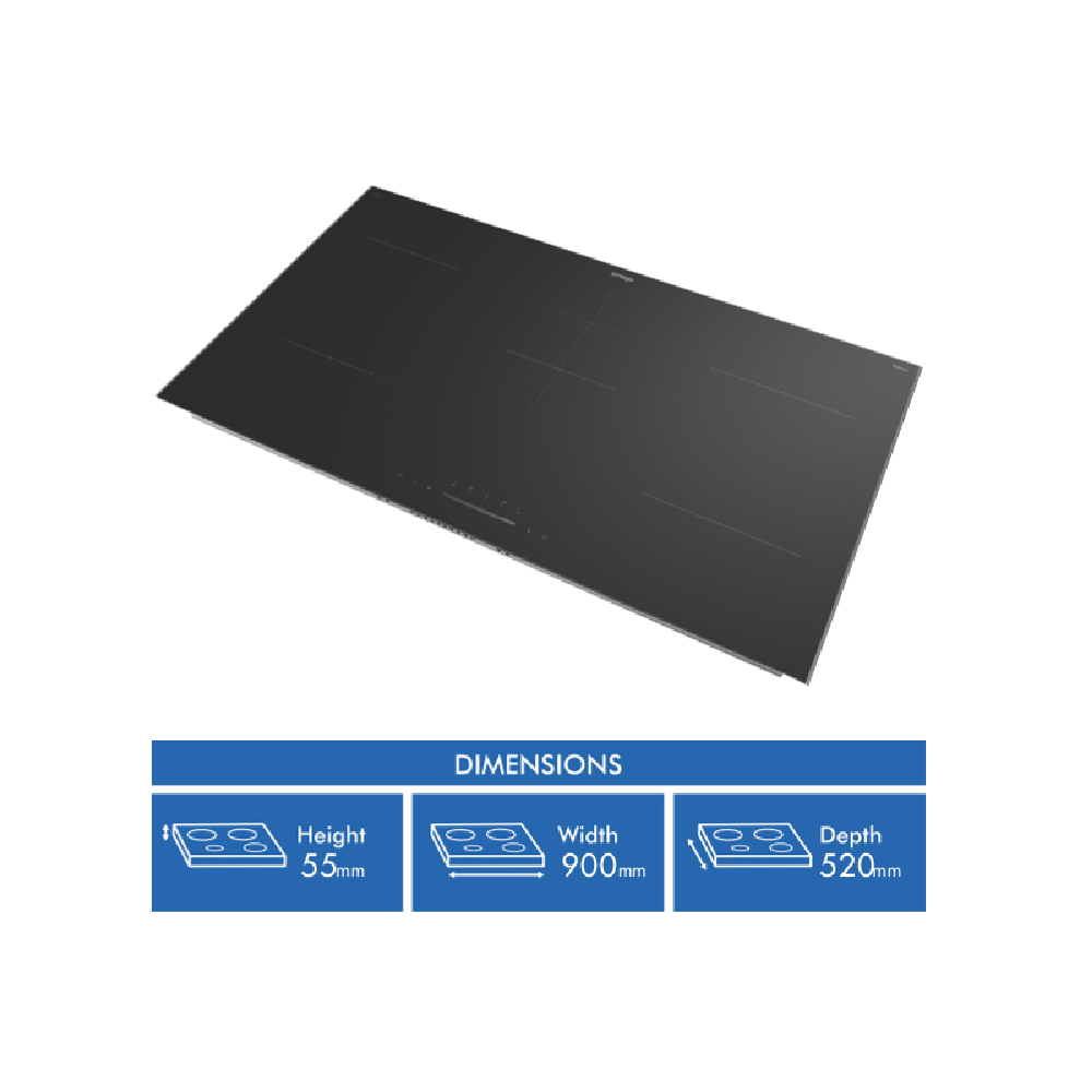 Upgrade your cooking with the Omega 90cm ceramic cooktop. With its sleek black design and durable DiaCeram ceramic glass surface this electric cooktop is built to last. The five cooking zones including two flexible zones give you plenty of space to whip up all your favorite meals. And with power levels up to 1800W you can cook quickly and efficiently. Safety features like a child lock residual heat indicators and automatic shut off give you peace of mind. Plus the 99-minute zone timer keeps you on track. Model OCC905TZ comes with a 3-year warranty.