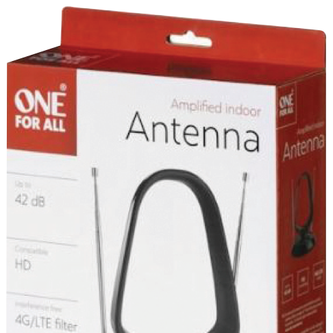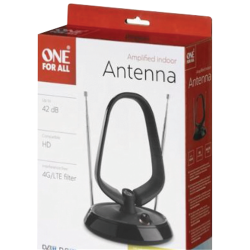 Enjoy crystal-clear AV signals and access up to 15km of range with the One For All HD Indoor Antenna. This 220mm tall and 160mm deep indoor antenna amplifies signals by 42 decibels for smooth interference-free viewing. With simple plug-and-play installation this antenna makes it easy to cut the cord and access free-to-air TV channels. Its compact low-profile design blends into any room decor for discreet out-of-sight placement. Built to last this durable antenna pulls in stations with ease. Tune into all your favorite shows and sporting events in vivid high definition picture quality. The manufacturer's part number for this product is UE-SV9143. Bring home the One For All antenna for effortless over-the-air entertainment.
