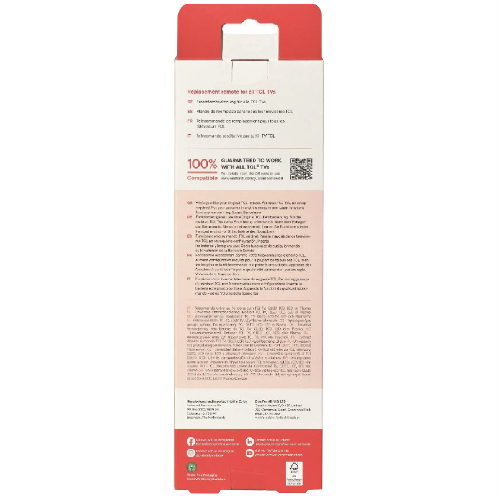 One For All TCL TV Replacement Remote Control