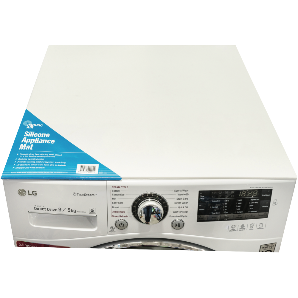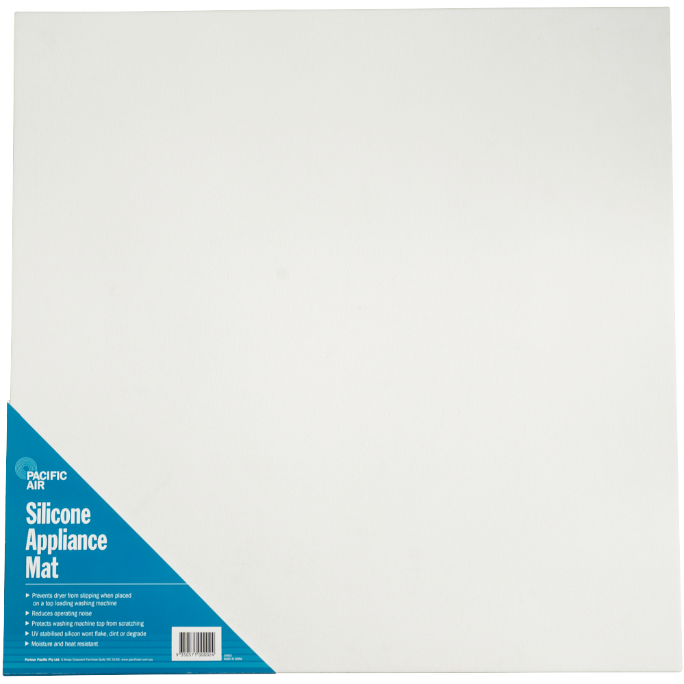 Protect your washing machine and reduce noise with the Pacifica White Silicone Appliance Mat. This useful mat provides a moisture and heat resistant surface that safeguards your appliance from scratches. The white silicone mat dampens vibrations and operating noise for a quieter laundry experience. Durable and easy to clean the mat stays put on the floor to prevent shifting. With its heat resistance the mat also protects from hot drips and spills from the washing machine.The versatile silicone material ensures this mat withstands everyday wear and tear. Place it under the washing machine dryer or any other appliance to defend your floors from damage. The manufacturer's part number for this product is SAM01. Consider the Pacifica White Silicone Appliance Mat for protecting your laundry appliances today.