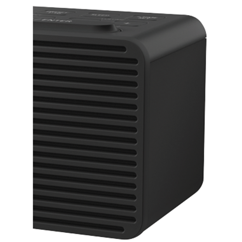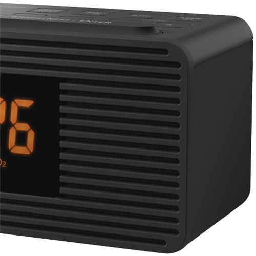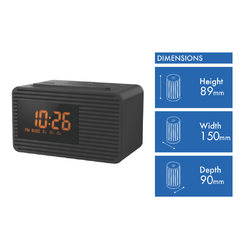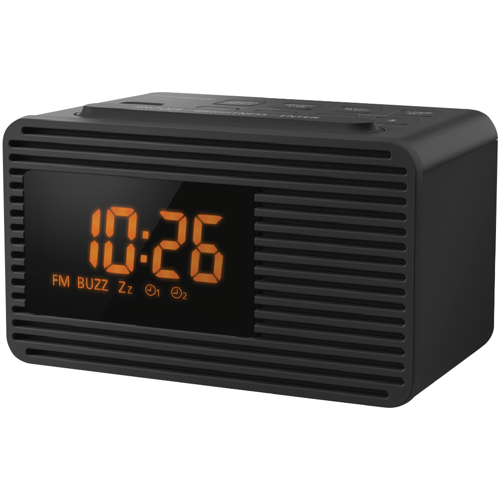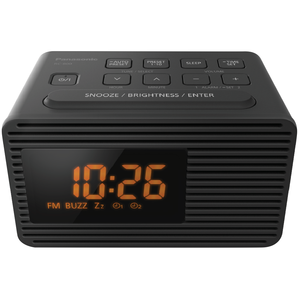 Wake up refreshed and informed with the Panasonic Dual Alarm Clock Radio. This compact clock radio packs a punch letting you preset 10 of your favorite FM radio stations between 87.5-108 MHz so you can start your day listening to the music or talkback you love. The large easy-to-read orange LED display ensures you'll never hit snooze again while the 5cm full-range speaker delivers warm rich sound. Equipped with dual alarm timers you can set separate wake-up times for weekdays and weekends. At just 89mm high 150mm wide and 90mm deep its space-saving design is perfect for bedside tables and desktops alike. Enjoy the convenience of a 1 year manufacturer's warranty. The manufacturer's part number for this product is RC-800GN-K. Discover how the Panasonic Dual Alarm Clock Radio can revolutionize your morning routine today.