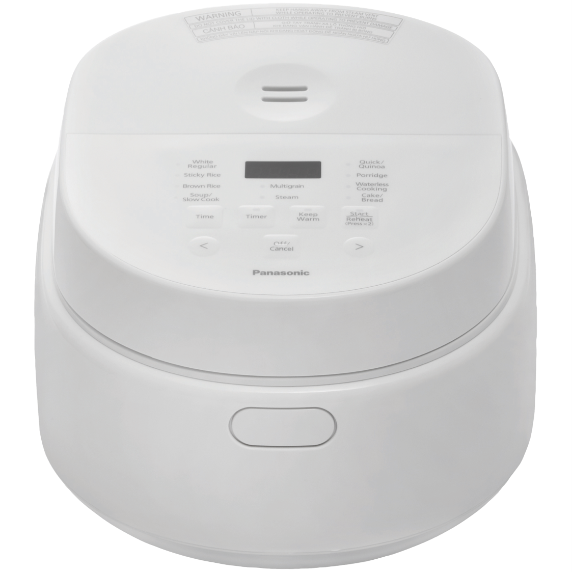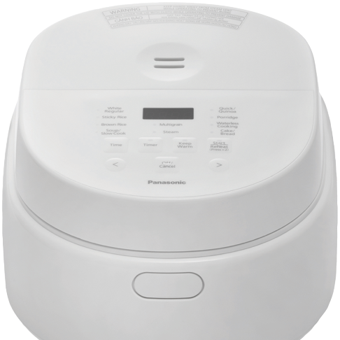Programs 10: White Rice, Quick/Qinoa, Brown Rice, Multigrain, Sticky Rice, Porridge, Cake/Bread, Steam, Soup/Slow Cook, Waterless Cooking