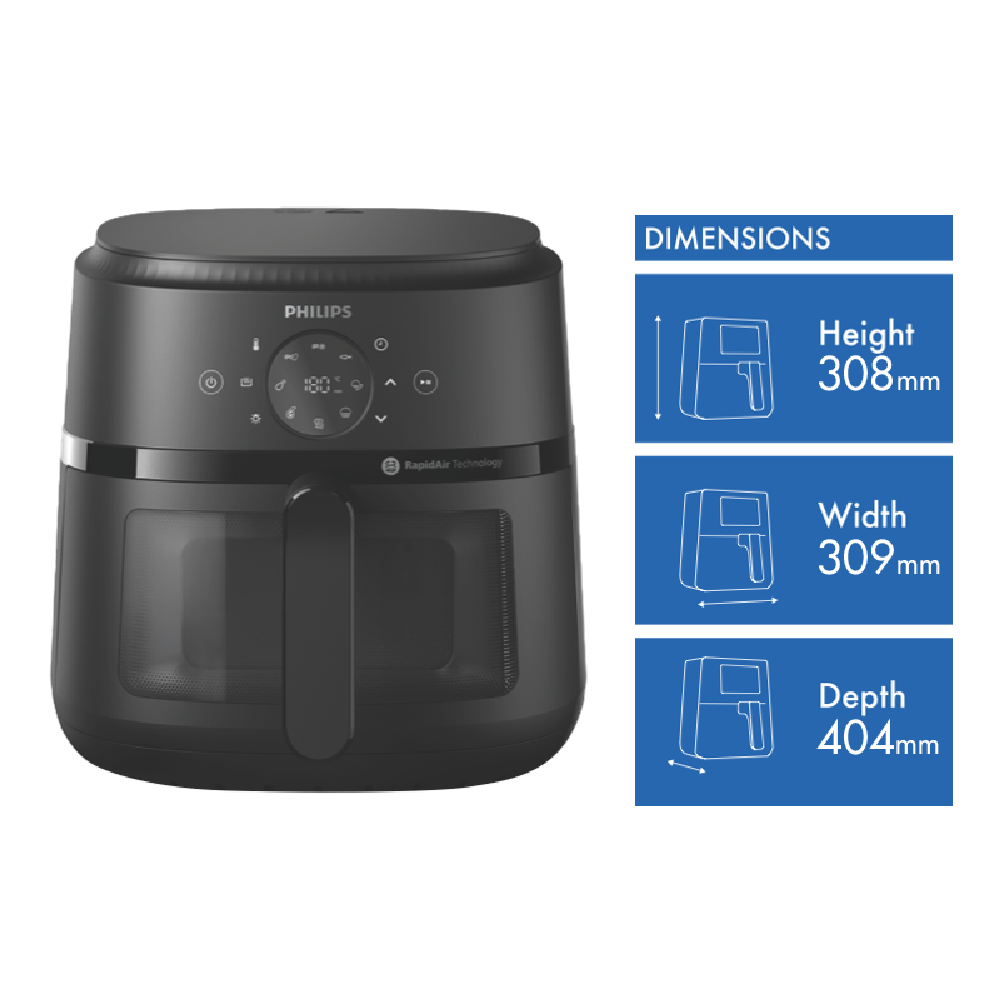 • Air fryer with 6.2 Litre capacity, 4.2 Litre for fries