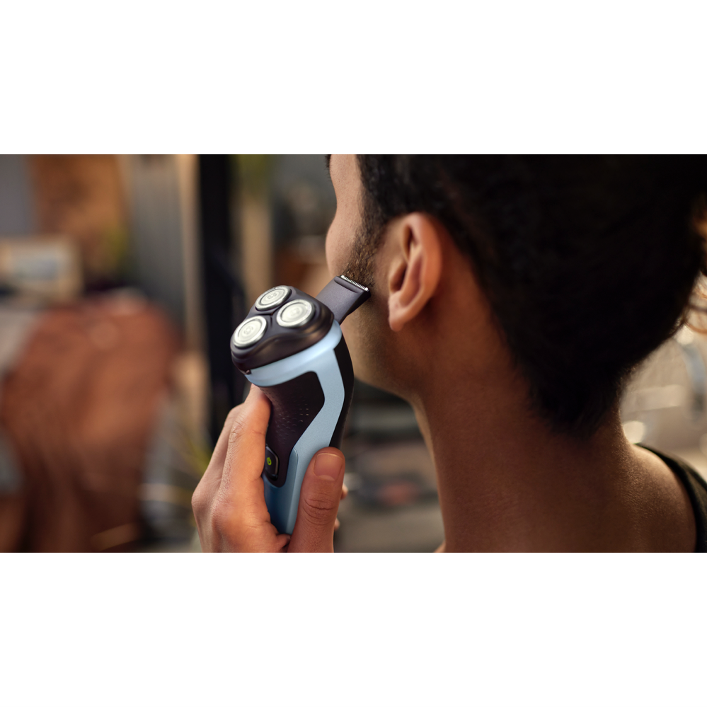 Ready for a shave that's smooth comfortable and effortless? The Philips 3000 Series Shaver X3063/00 in celestial blue is your go-to grooming companion. With 27 self-sharpening ComfortCut blades delivering 55000 cuts per minute you'll enjoy a close shave every time. The 4D Flex Heads follow the contours of your face while the Anti-Corrosion Shaving System ensures long-lasting performance. Enjoy the convenience of wet or dry shaving and easily trim your mustache and sideburns with the pop-up trimmer. The cordless design and anti-slip grip make shaving a breeze and with a 1-hour charge providing 45 minutes of runtime you'll have plenty of power for multiple shaves. Low on time? A 5-minute quick charge gives you enough juice for a full shave. Cleaning is a snap with the one-touch open feature. The Philips 3000 Series Shaver X3063/00 comes with a protective cap and a 2-year manufacturer's warranty giving you peace of mind with your purchase. Elevate your grooming routine and experience the difference of Philips shaving technology.
