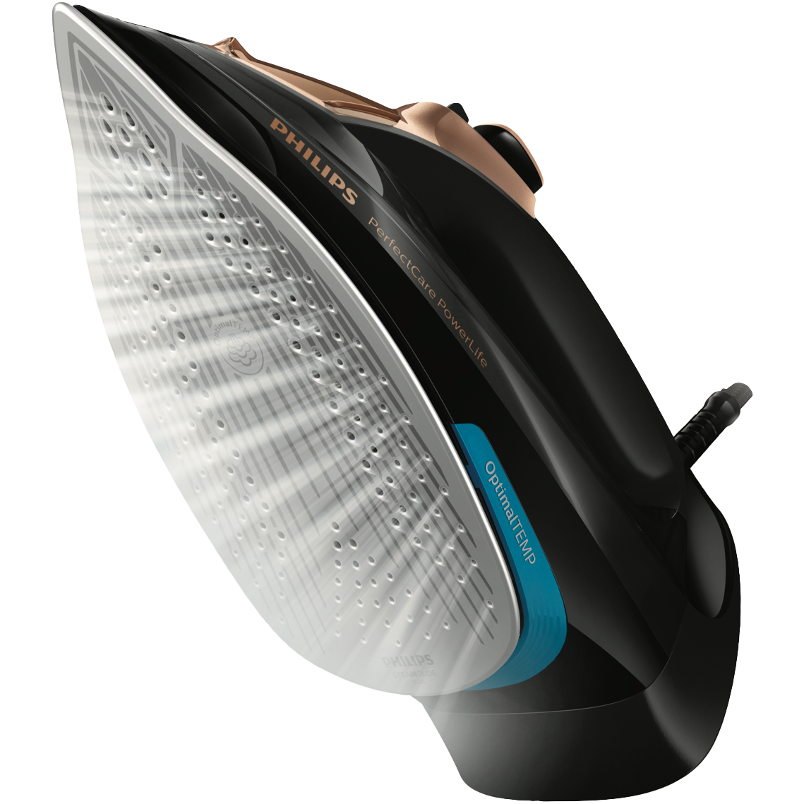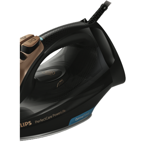 Say goodbye to wrinkles and hello to smooth crisp ironing with the Philips PerfectCare PowerLife Black Steam Iron. This powerful 2400W iron with SteamGlide Plus titanium soleplate glides effortlessly over fabrics to remove creases in no time. Its 300ml water tank capacity provides up to 45g/min of continuous steam output and a 185g/min steam shot to tackle even the toughest wrinkles. The built-in Calc Clean Slider makes descaling and cleaning a breeze. With its black colour 2kg weight and compact 312 x 147 x 127mm size this iron delivers top performance while adding a touch of elegance to your laundry. Auto shut off provides peace of mind. Backed by Philips' 2 year warranty this steam iron's array of features like the anti-calc and anti-scale system will keep your clothes looking crisp day after day. The manufacturer's part number for this product is GC3929/64. Bring home the Philips PerfectCare PowerLife Black Steam Iron for smooth effortless ironing.