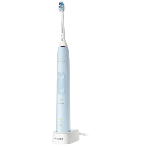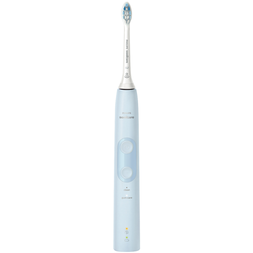 Get your smile gleaming and your gums feeling fantastic with the Philips ProtectiveClean 4500 Gum Health electric toothbrush. This light blue brush features a 2-minute timer to guide your brushing routine for optimal dental care. With specialized Clean and Gum Care modes the ProtectiveClean adapts to gently remove plaque and massage your gums. The rechargeable lithium ion battery provides up to 2 weeks of runtime between charges. Keep tabs on power levels with the handy battery indicator light. When it's time to refresh simply place the toothbrush on the included charger. You'll also find replacement reminder icons and a pressure sensor for a personalized clean. Everything you need comes in the box - charger brush heads and handle. Backed by Philips' 2 year warranty this toothbrush delivers exceptional gum care and protection. The manufacturer's part number for this product is HX6823/16. Give your oral health a boost and order the Philips ProtectiveClean 4500 Gum Health today.