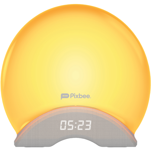 Wake up refreshed and energized with the Pixbee Alarm Clock Smart Wake Up Light. This innovative alarm clock mimics a sunrise to gently wake you up transforming night into day through its soft glow that brightens from a warm candlelight to bright sunshine over a 20-30 minute period. With its modern LED technology and wide colour range from 2000K to 4000K the Pixbee creates the perfect environment to start your day feeling positive and productive. Compatible with iOS 9.0+ and Android 5.0+ this smart lighting alarm clock can be controlled remotely via Wi-Fi and your mobile device. It also works seamlessly with voice assistants like Amazon Alexa and Google Assistant for hands-free operation. The Pixbee light alarm clock features a long-lasting 25000 hour bulb and 1 year manufacturer's warranty for peace of mind. With its bright 350 lumens programmable sunrise and sunset lighting and built-in ambient sounds this is the ideal alarm to wake up refreshed energized and ready to seize the day. The manufacturer's part number for this product is PXB-103L. Check out the Pixbee Alarm Clock Smart Wake Up Light today to transform your mornings.