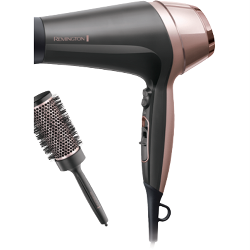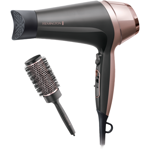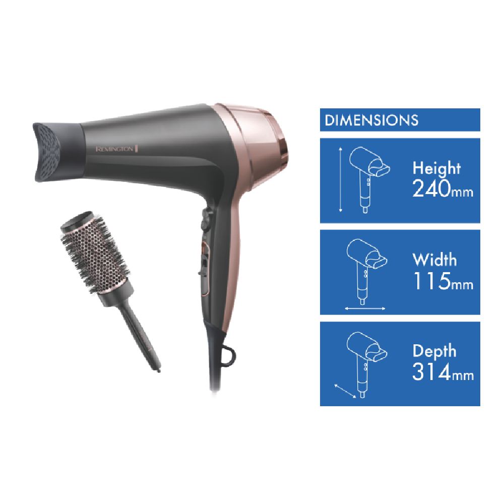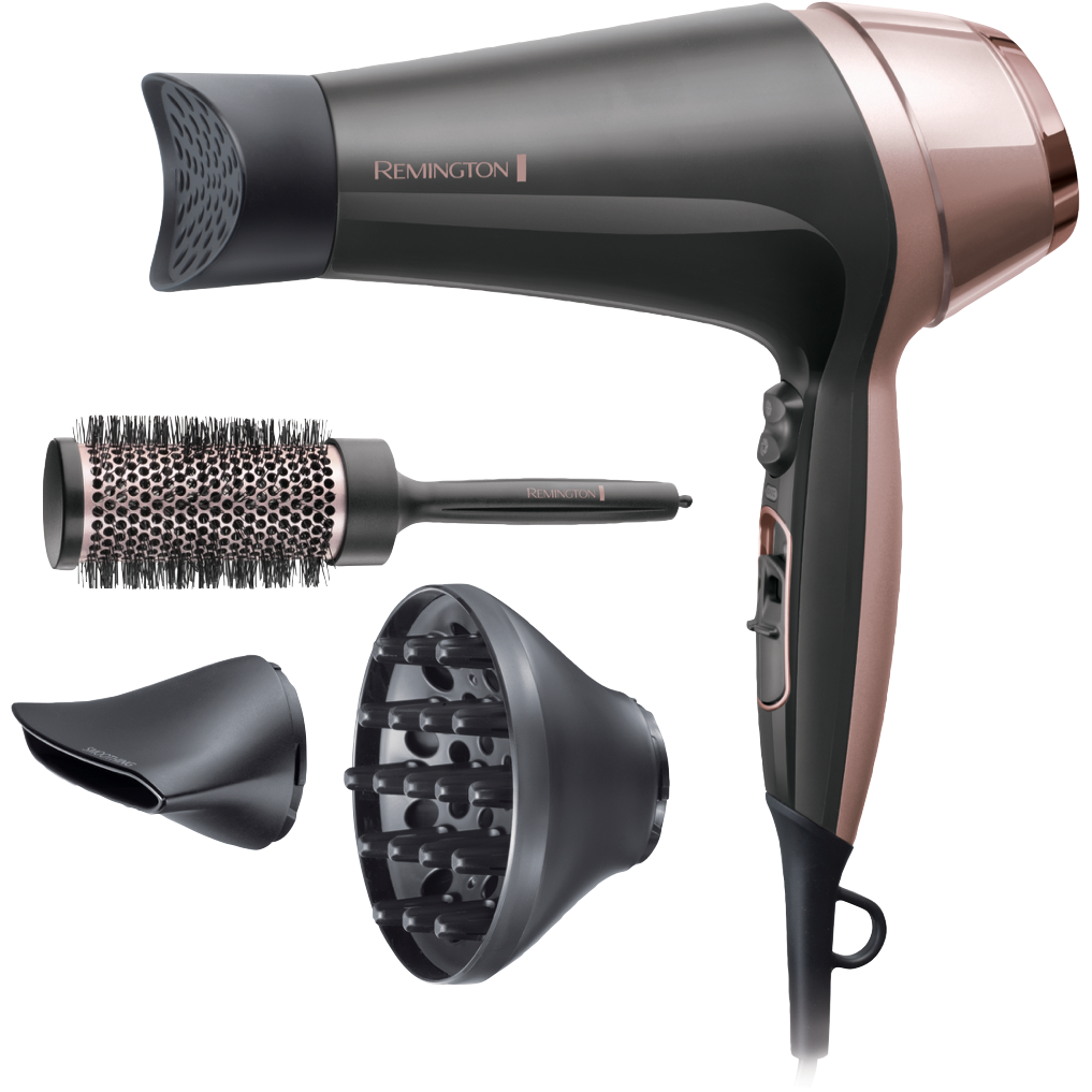 Introducing the Remington Curl and Straight Confidence Hair Dryer D57063AU: the all-in-one styling tool allowing you to create a sleek blow-dried finish or salon-smooth waves from the convenience of home. Experience fast drying and easy styling at once with its powerful yet gentle 2000W dryer and lightweight design while the ceramic grille infused Tourmaline distributes heat evenly and ionic conditioning gives you the smooth results you're after. This Remington hair dryer includes a curling concentrator smoothing concentrator diffuser attachments and a 45mm round brush so you can perfect the right finish for your desired look. Plus with variable heat and speed settings it can easily adapt and care for different hair types.