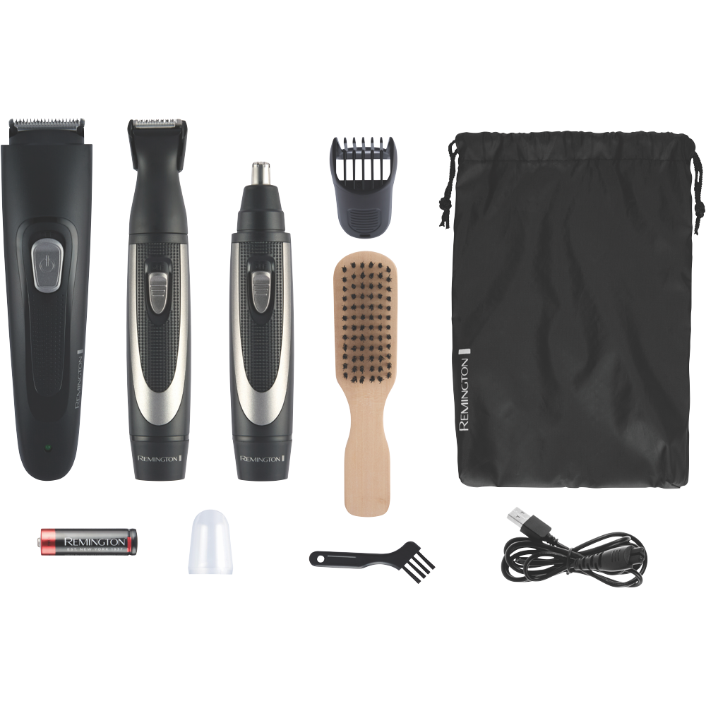 How about stepping up your grooming game with the Remington The Works Beard Kit? This handy set comes with a beard trimmer featuring self-sharpening blades and 9 length settings from 2mm to 18mm so you can easily maintain your preferred style. There's also a precision trimmer with a 1mm-5mm stubble comb for those rugged looks. And don't forget the rotary nose and ear trimmer to keep things tidy. With up to 45 minutes of cordless runtime and USB charging it's always ready when you are. The kit even includes a storage pouch and beard brush to keep your grooming essentials organized. Remington's got your back with a 3-year warranty on model MB095AU.