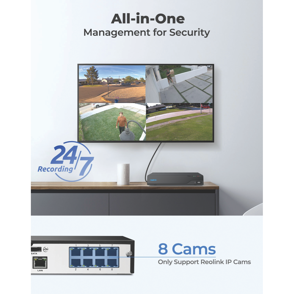 • Supports up to 8 channels for camera connections