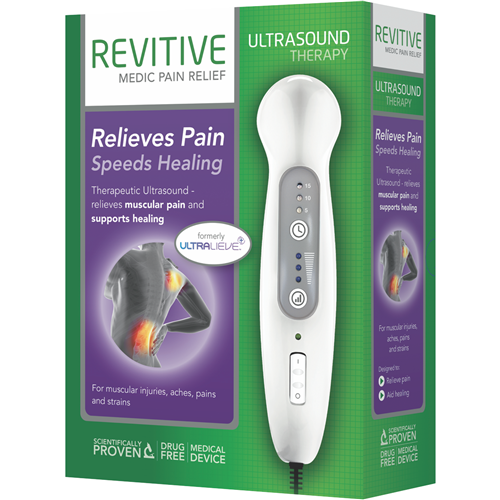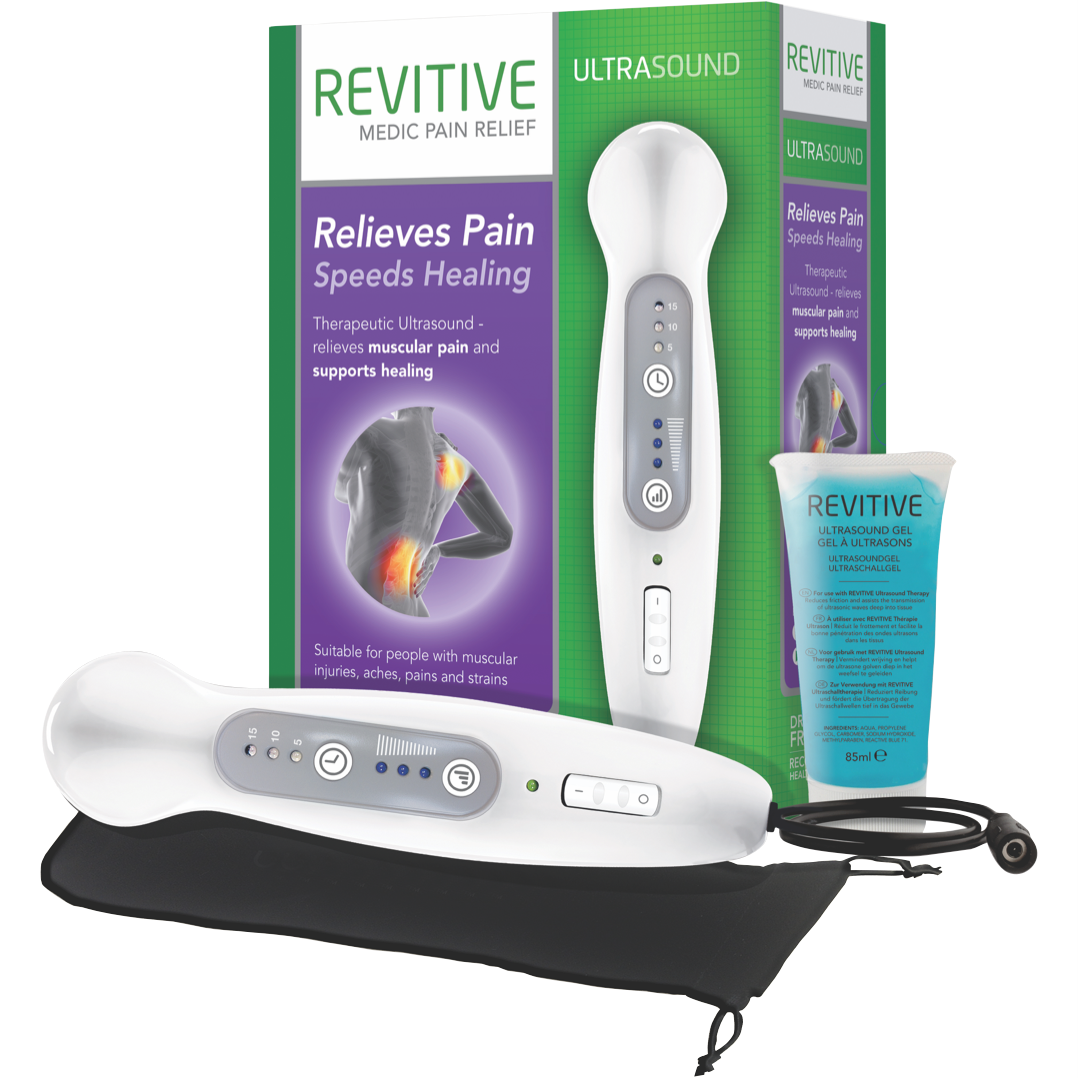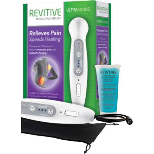 Ease sore muscles and stimulate circulation with the Revitive Ultrasound Therapy device. This white TENS machine massager features vibration massage and three intensity settings to provide drug-free relief. The easy-to-use device stimulates the skin's tissue cells to promote healing. With the Revitive you can relax after a long day or loosen up tight muscles after exercise. The lightweight massager includes a power adapter 85ml conductive gel and comes with a 2 year manufacturer's warranty. Experience the soothing therapeutic benefits of ultrasound technology in the comfort of your own home. The manufacturer's part number for this product is 3271-UT1033-AU. Give your body the care it deserves with the Revitive Ultrasound Therapy.