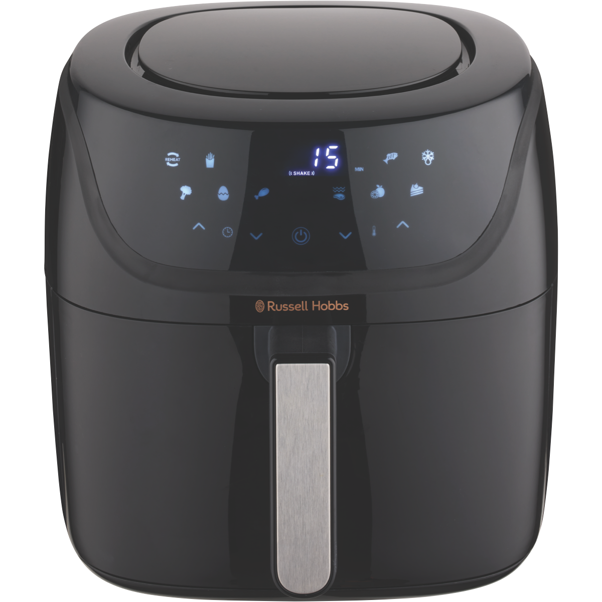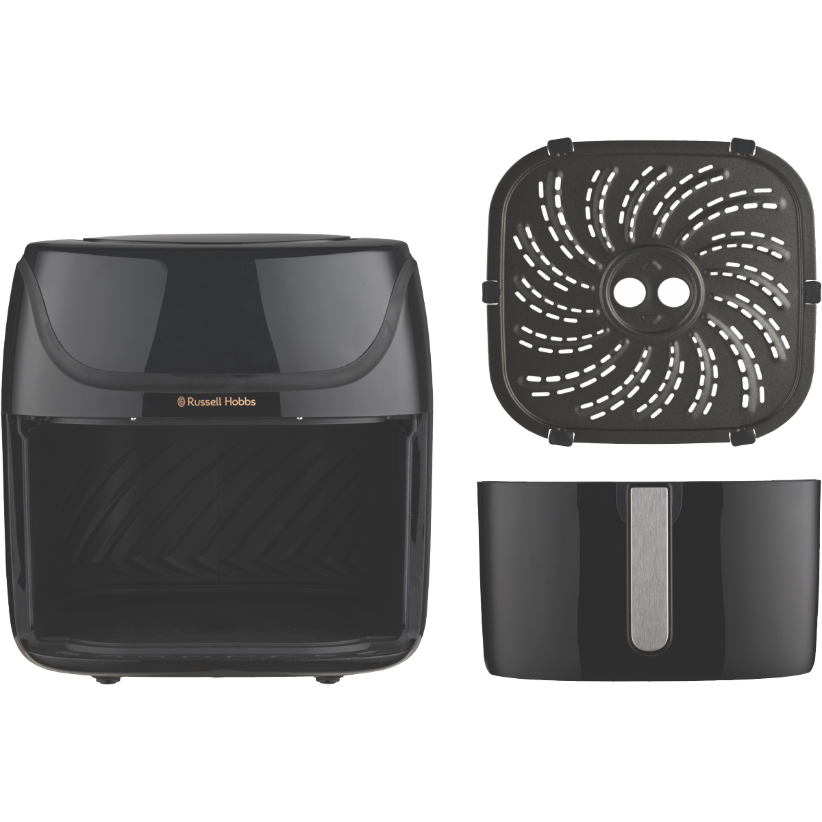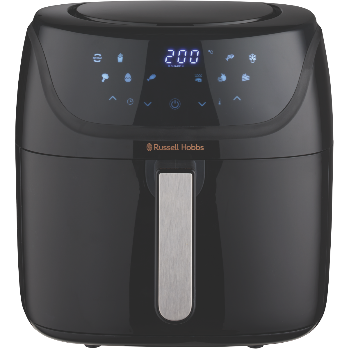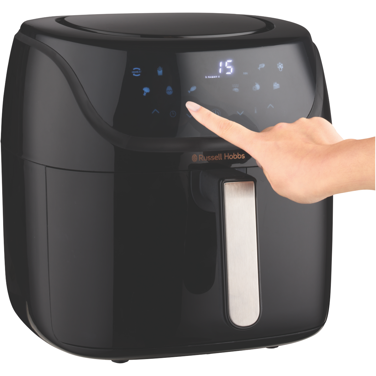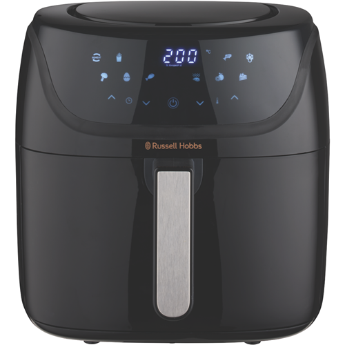 The Russell Hobbs 8 Litre Satisfry Extra Large Air Fryer brings healthy low-oil frying to your kitchen. With its generous 8 litre capacity rapid air technology and 10 preset cooking modes including fries vegetables fish and more you can cook family-sized portions of your favourite foods with up to 75% less fat than traditional frying. The sleek black finish and digital touch controls give this air fryer a stylish look and feel. With temperature settings up to 220°C non-stick coated removable parts and a handy mid-cycle alarm the Satisfry makes cooking crispy chips roasted veggies and juicy meats simple. The basket and crisping plates are dishwasher safe for easy cleanup. Backed by Russell Hobbs' 2 year warranty this air fryer delivers fast convenient and healthier cooking for all your family favourites. The manufacturer's part number for this product is 27170AU. Check out the Russell Hobbs Satisfry Extra Large Air Fryer for your next delicious meal.