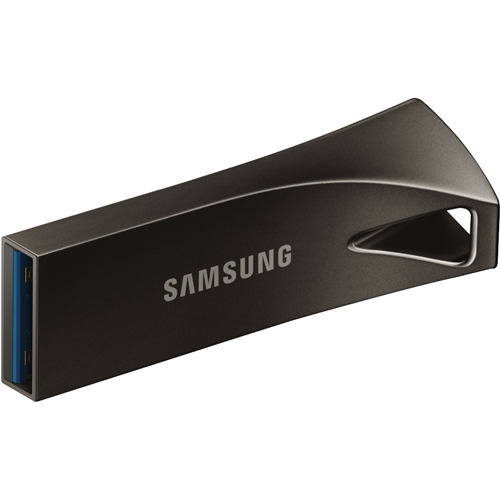 The Samsung 256GB USB3.1 Bar Plus Flash Drive in Titan Gray offers high-speed portable storage and transfer for your data. With blazing 300 MB/s transfer speeds you can quickly move files between devices via the fast USB 3.1 connection. The generous 256GB capacity gives you ample space for photos videos documents and more. Measuring just 40 x 15 x 11mm this compact flash drive slips easily into your pocket or bag. Built with Samsung reliability the durable gray metal casing protects your data on the go. Whether you need to transfer presentations for work share vacation photos or backup your files this USB drive delivers portable storage you can count on. The manufacturer's part number for this product is MB-MJ128GA/APC.