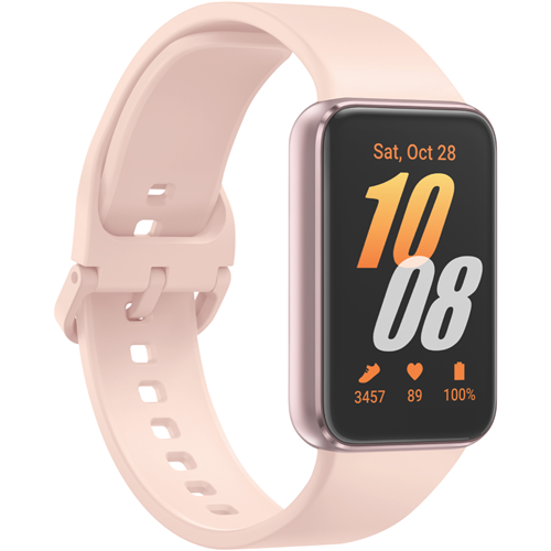Keep track of your fitness journey with the Samsung Galaxy Fit3 Watch in elegant Pink Gold. This slim lightweight smartwatch is ready for motion with its 256 x 402 display that shows all your health stats at a glance. Track your steps with the built-in pedometer monitor your heart rate throughout the day and even analyze your sleep patterns for better rest. The impressive 208mAh battery lasts up to 13 days so you won't need to charge it constantly. With Bluetooth 5.3 connectivity you can pair it with your phone for GPS tracking during outdoor activities. It's IP68 water resistant too perfect for workouts in any weather. The watch comes with a charging cable and quick start guide all backed by a 1-year warranty. Part number: 11901326666.