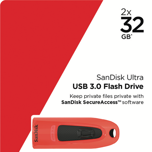 Looking for a convenient way to store and transport your files and media? This twin pack of Sandisk 32GB Ultra USB Flash Drives offers ample storage capacity and fast transfer speeds to keep you moving. With a generous 32GB of storage space on each sleek drive you'll have room for thousands of photos videos documents and more. The USB 3.0 interface enables rapid file transfers up to 100MB/s so you can quickly back up important files or transfer media on the go. These durable drives feature a compact design that easily fits into your pocket or bag. Whether you need to share a presentation for work store vacation photos or take your music collection with you this twin pack has you covered. Backed by a 5 year manufacturer's warranty you can trust the reliability of these Sandisk drives. The manufacturer's part number for this product is SDCZ48-032G-G462. Give your data the portable storage solution it needs with this handy twin pack of 32GB Sandisk Ultra USB flash drives.