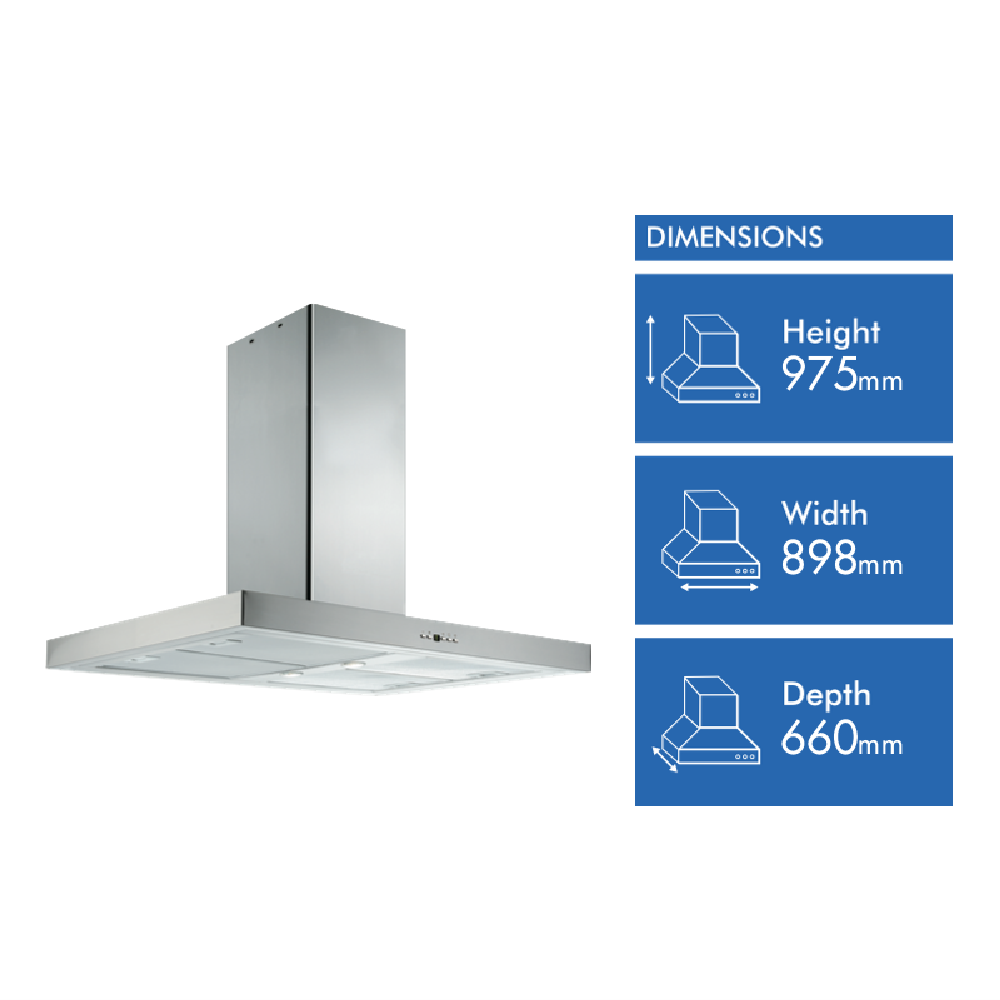• 90cm ducted canopy with 2 x 3 Watt LED lights