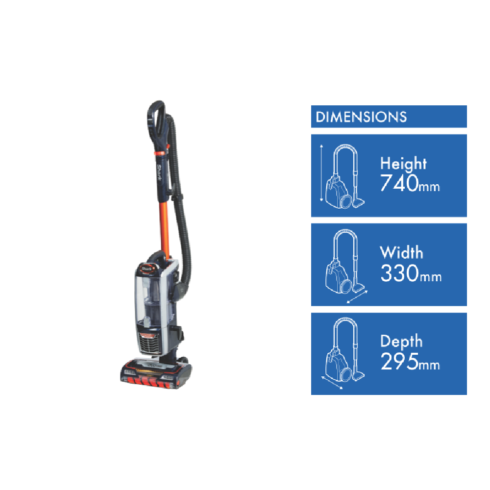 Tackle dirt and dust with ease using the powerful Shark Corded Upright Vacuum with DuoClean and Self-Cleaning Brushroll. This bagless upright vacuum provides a max cleaning reach of 8 metres weighing only 3.9kg for easy maneuverability. The 750 watt motor delivers robust suction power while the DuoClean technology features a soft roller and bristle brush to effectively clean carpets and hard floors in one pass. The self-cleaning brushroll removes tangled hair and debris with just the push of a button. A 2-in-1 crevice tool upholstery tool and Shark's 2 year warranty provide extra value. Conveniently maintain your floors without hassle thanks to this feature-packed upright vac. The manufacturer's part number for this product is NZ801. Discover a new level of clean with the Shark Corded Upright Vacuum today.