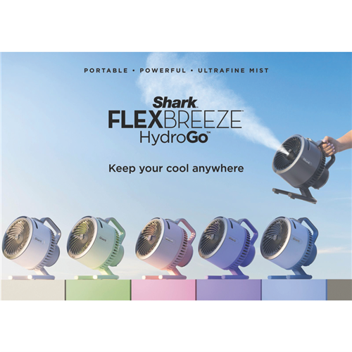 Shark FlexBreeze HydroGo is the ultra-powerful portable fan that mists and cools anywhere indoors and outdoors. Bring the breeze with up to 20 metres of quiet cooling coverage in one ultra-compact fan with dynamic colours for every personality.