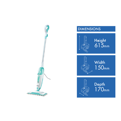 Make light work of cleaning sealed hard floors with the Shark Steam Mop. This steam mop's powerful 1050W output generates steam on demand to sanitize surfaces and remove stuck-on grime while its large 375ml water tank allows up to 30 minutes of steam cleaning before refilling. The steam mop's lightweight 1.8kg body maneuvers easily under furniture to clean hidden areas. Its 5.5m power cord gives you flexibility to clean multiple rooms without unplugging. The Shark Steam Mop comes with a dirt grip pad and mop head to trap and lock dirt in place as you clean. Enjoy sparkling floors without chemicals using this steam mop's natural steam cleaning power. Shark provides a 1 year warranty for peace of mind. The manufacturer's part number for this product is S1000. Bring this steam mop home to refresh hard floors effortlessly.