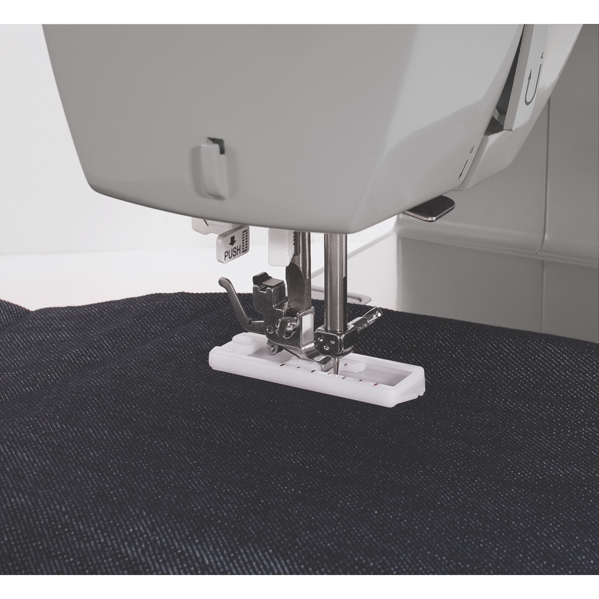 Additional Features 69 stitch applications, stainless steel bed plate, adjustable presser pressure, automatic metal bobbin winder, 60% stronger than a standard sewing machine