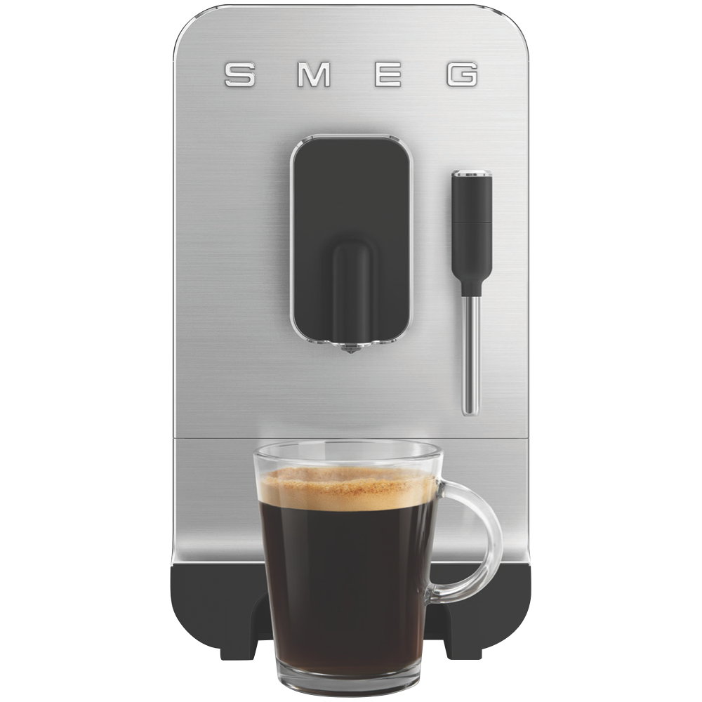 Elevate your coffee game with the sleek and stylish Smeg Bean To Cup Coffee Machine. This automatic coffee machine boasts a brushed aluminium front panel in a sophisticated matte black finish. With a powerful 1350-watt motor and 19 bar pump pressure you can enjoy barista-quality coffee at home. The built-in grinder ensures the freshest brew while the 1.4L water tank provides plenty of capacity for multiple cups. Want to add a creamy touch? The integrated milk frother lets you craft lattes and cappuccinos with ease. Customize your coffee just the way you like it with adjustable settings for coffee length dispenser height and water. Cleaning is a breeze with the included cleaning brush and steam wand cleaning needle. Measuring 433mm high 336mm deep and 180mm wide this 8.4kg machine will be a standout addition to your kitchen. Enjoy peace of mind with a 2-year manufacturer's warranty. Experience the convenience and quality of the Smeg BCC12BLMAU Bean To Cup Coffee Machine.
