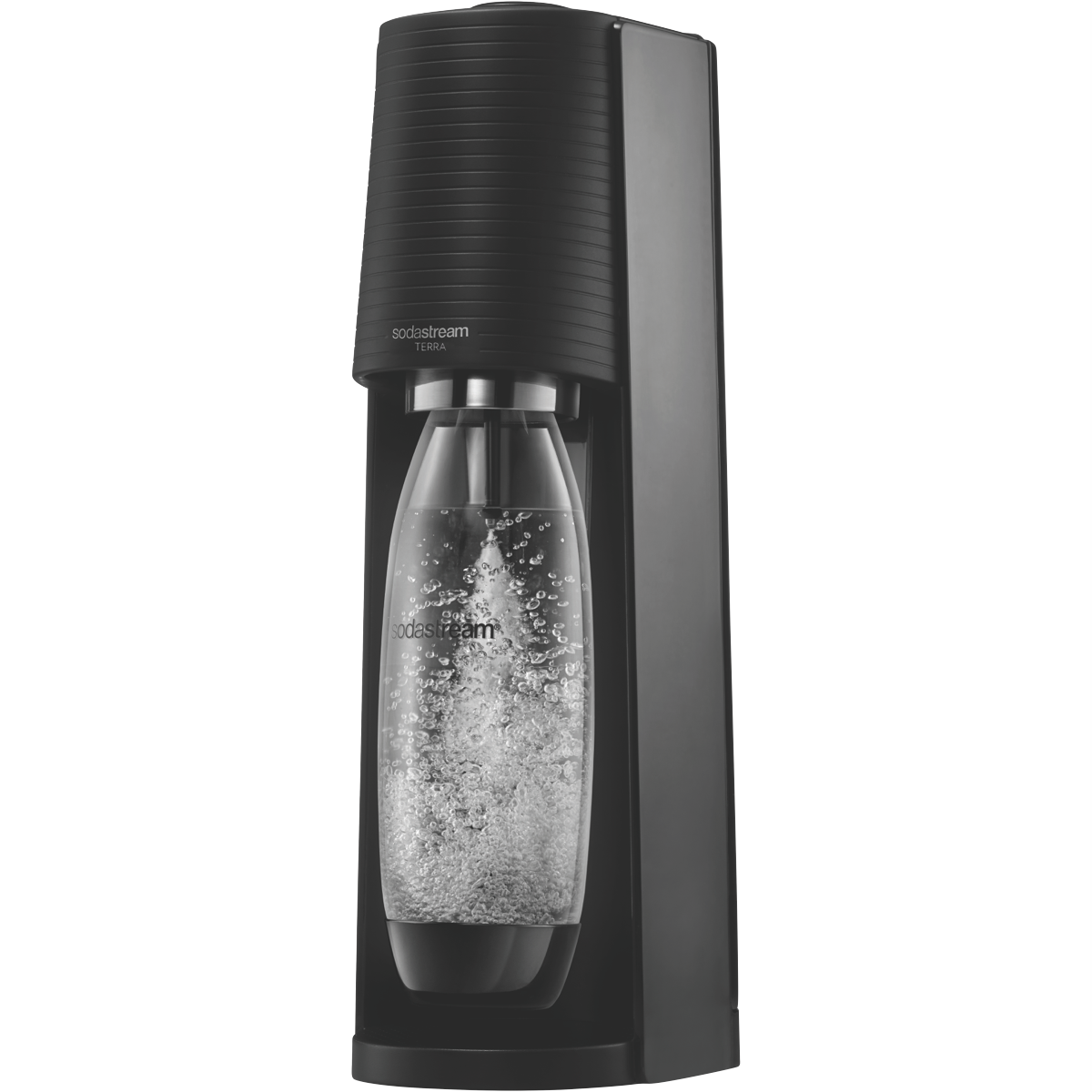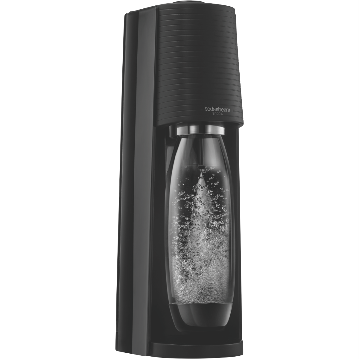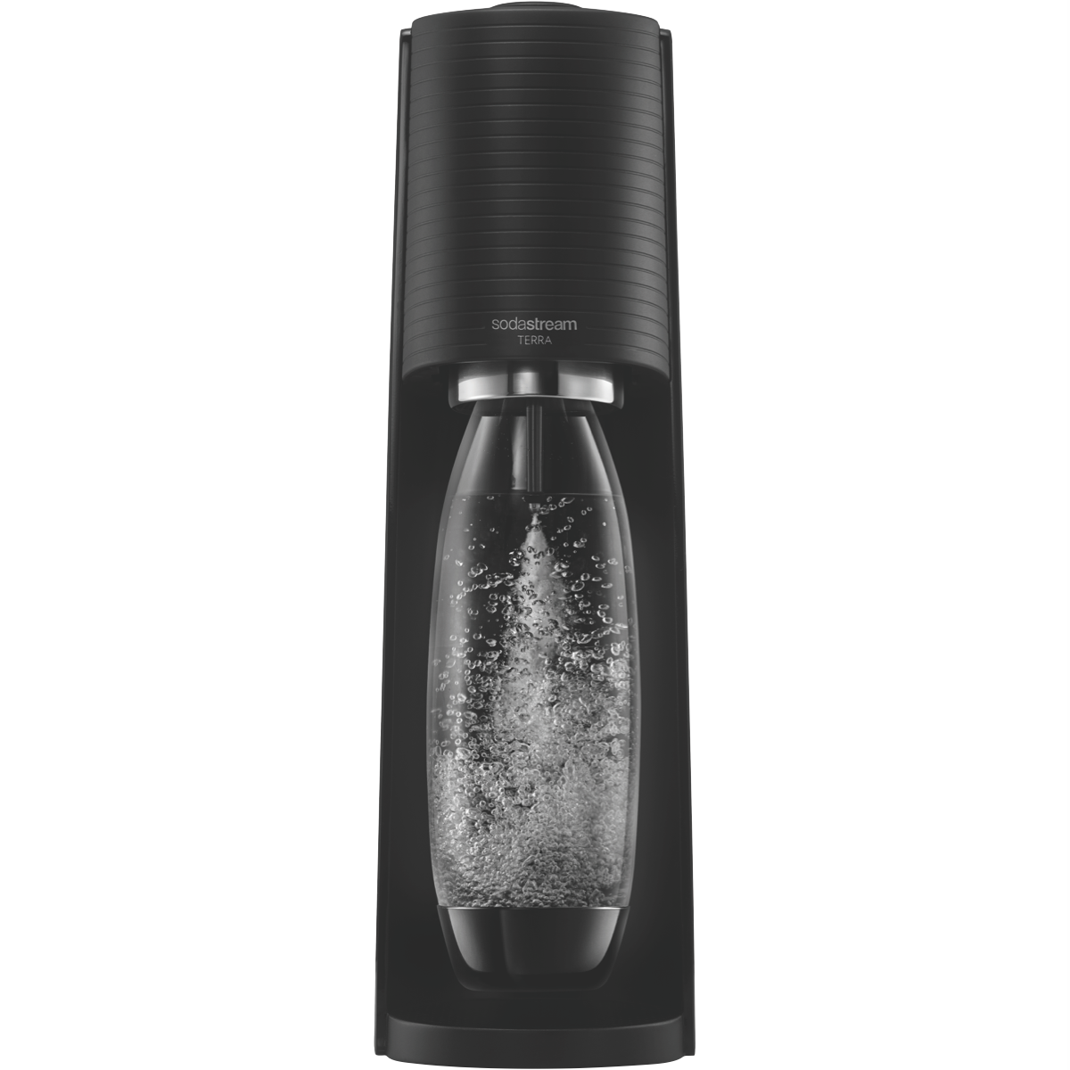 Introducing the Terra SodaStream's newest Sparkling Water Maker. Turn plain water into fresh sparkling water in seconds. Designed for the modern kitchen it features the new Quick Connect technology (pink cylinder) for fast and easy CO2 cylinder insertion.