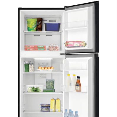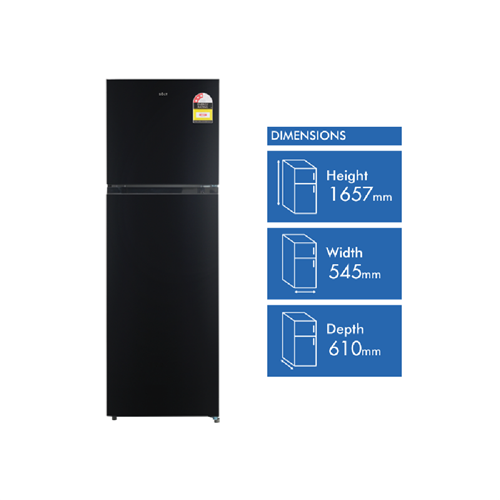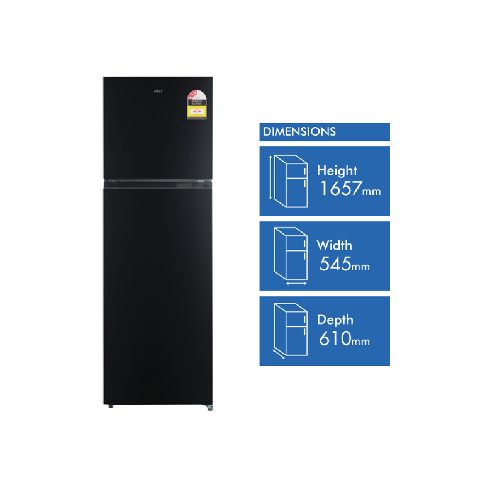 The Solt 266L Top Mount Refrigerator blends effortless functionality and reliable cooling into a sleek black exterior offering ample 266 litre capacity for busy families. Featuring 206 litres of fridge space and 60 litres of freezer capacity this top mount refrigerator provides spacious storage for fresh foods and frozen goods. Its durable black steel finish and right hand hinged reversible door add versatile aesthetic appeal. With digital temperature controls and quiet 43 decibel operation this fridge delivers convenient cooling power while minimizing noise. Additional highlights include adjustable slide damper frost free design LED lighting and 2 year manufacturer warranty for lasting performance. The Solt's combination of generous storage adjustable cooling easy access and quiet operation makes it an ideal choice for households seeking a top mount refrigerator to rely on every day. The manufacturer's part number for this product is GGSTM266B. For effortless organization and food freshness look no further than the Solt 266L Top Mount Refrigerator.