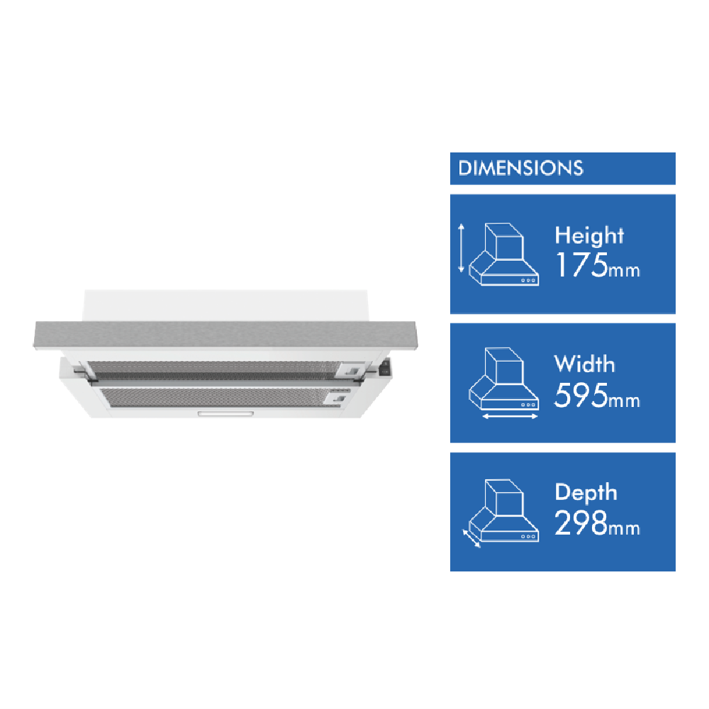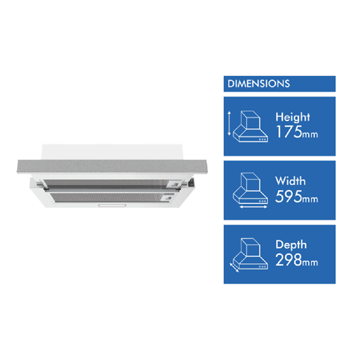 • 60cm slide out, ducted and recirculating, strip LED
