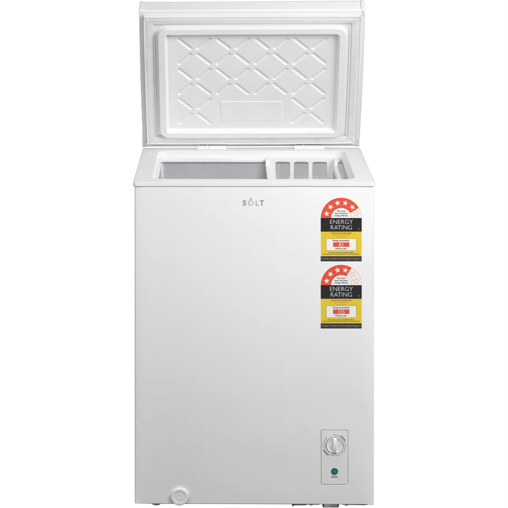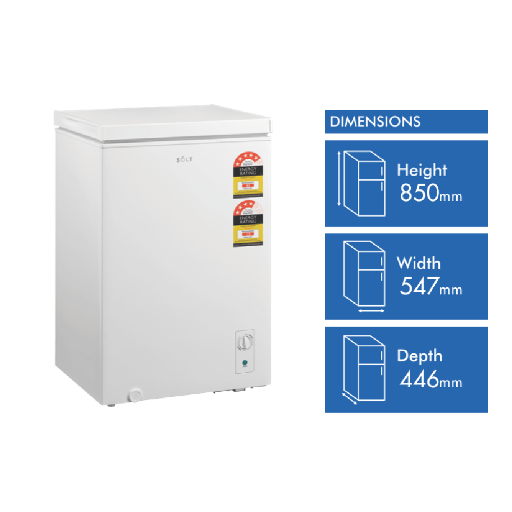 99 Litre Capacity. Inverter Motor. Self-Standing Lid: 40° / 70°. Fridge Energy Efficiency: 5 Star. Freezer Energy Efficiency: 4 Star. 1x Storage Basket. Recessed Handles. Adjustable Thermostat. Manual Defrost.