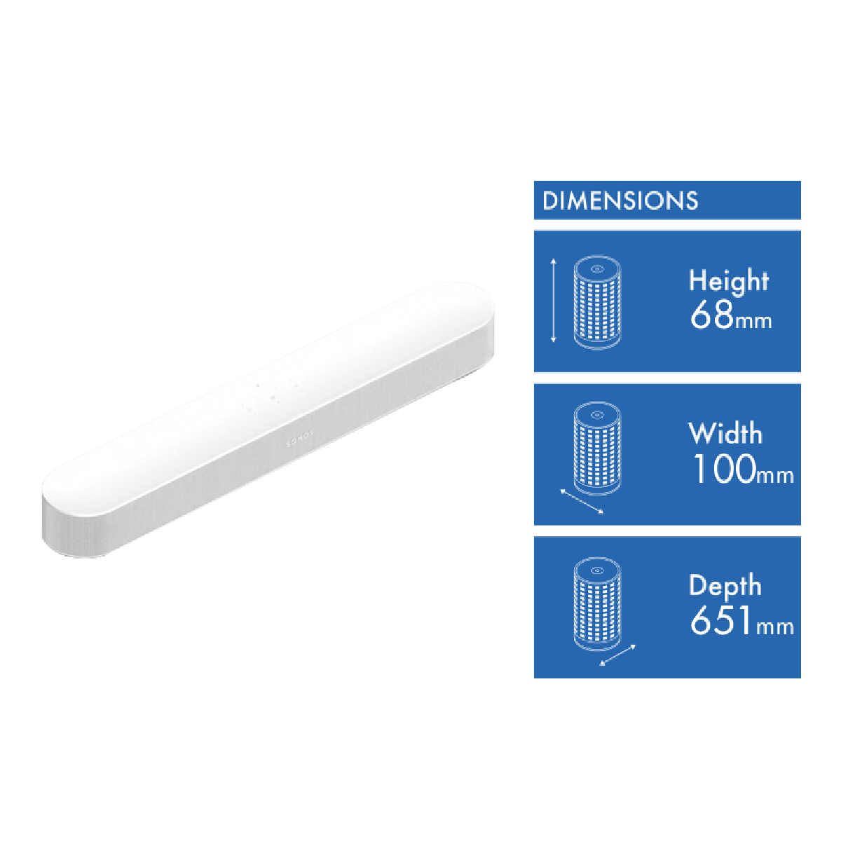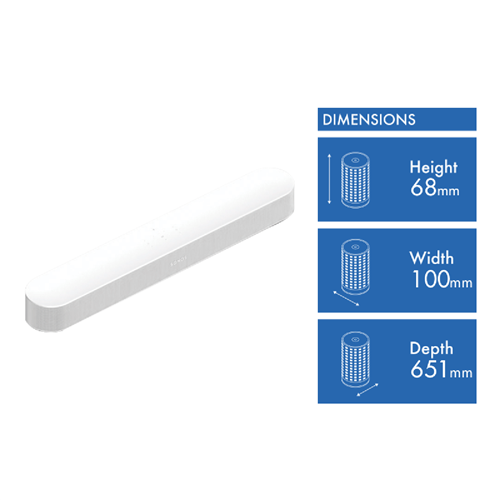 Bring amazing sound and breathtaking audio to the living room using the Sonos Beam Gen 2 Soundbar BEAM2AU1. Whether using it to enhance your beloved shows movies games or sports you will always hear clear voice detail and experience big panoramic sound. When entertaining guests you can play music easily straight from your favourite streaming services. The five class digital amplifiers centre tweeter four elliptical midwoofers and three passive radiators all work together to perform crisp and exciting high end and low end frequencies. Producing two dedicated audio paths that offers the true sound experience is the new 40% faster processing chip. Feel immersed into your movies with Dolby Atmos which uses audio algorisms to project sound and effects into the room; feel the roar of the crowd or the crackle of fireworks around you to bring yourself into the experience. Also the soundbar has been perfectly tuned by Oscar-winning sound engineers to ensure vocal clarity and volume is optimal to hear. By just using your voice Amazon Alexa or Google Assistant can help with a variety of tasks including checking the news setting timers or even control other smart home devices. Missing the remote? The Beam soundbar using intuitive touch controls can easily change tracks adjust the volume pause and play your music. Set up is simple using the step-by-step guide and two cable connection you will be playing immersive audio in no time.