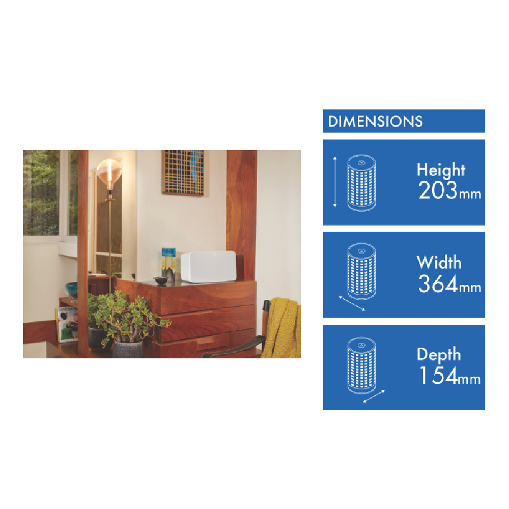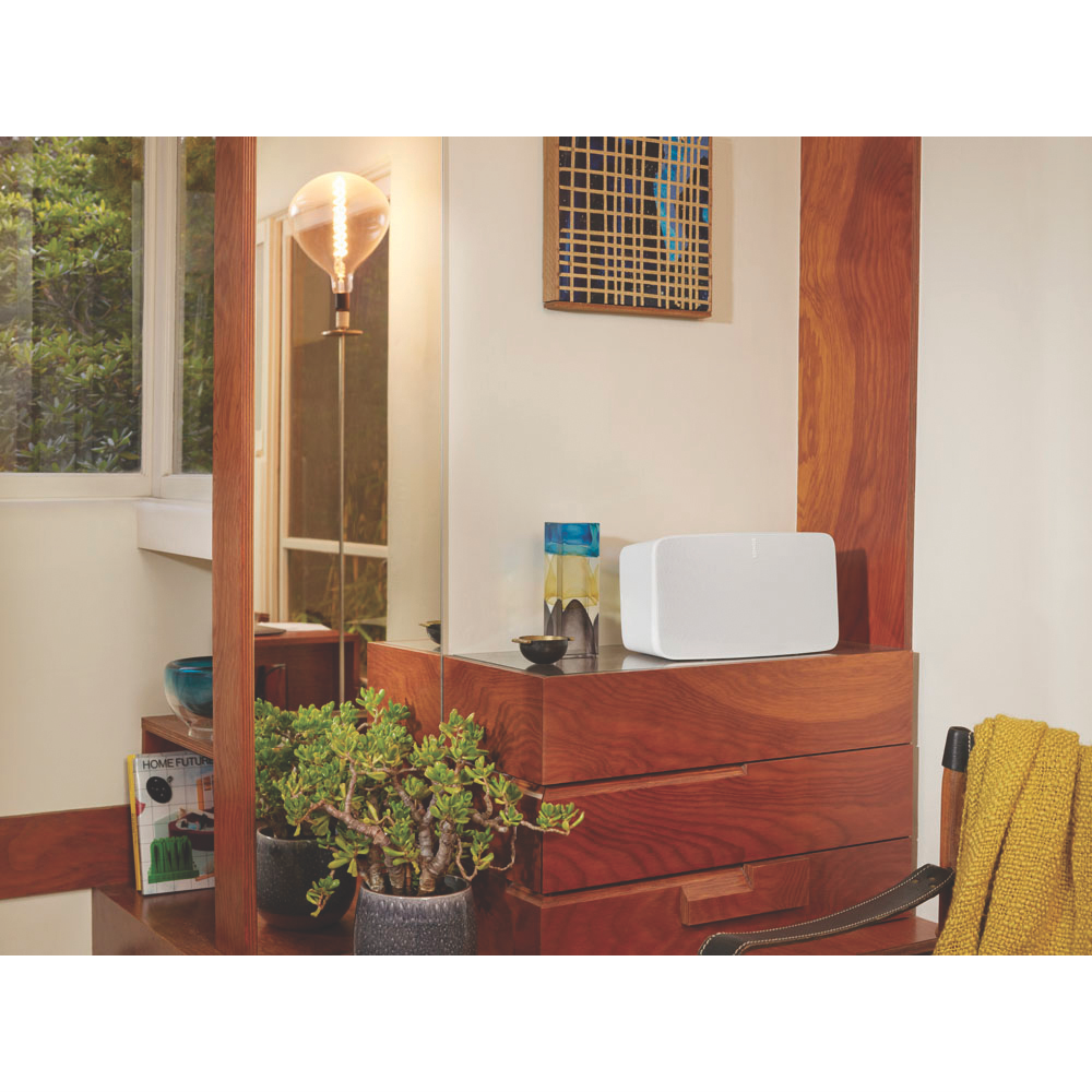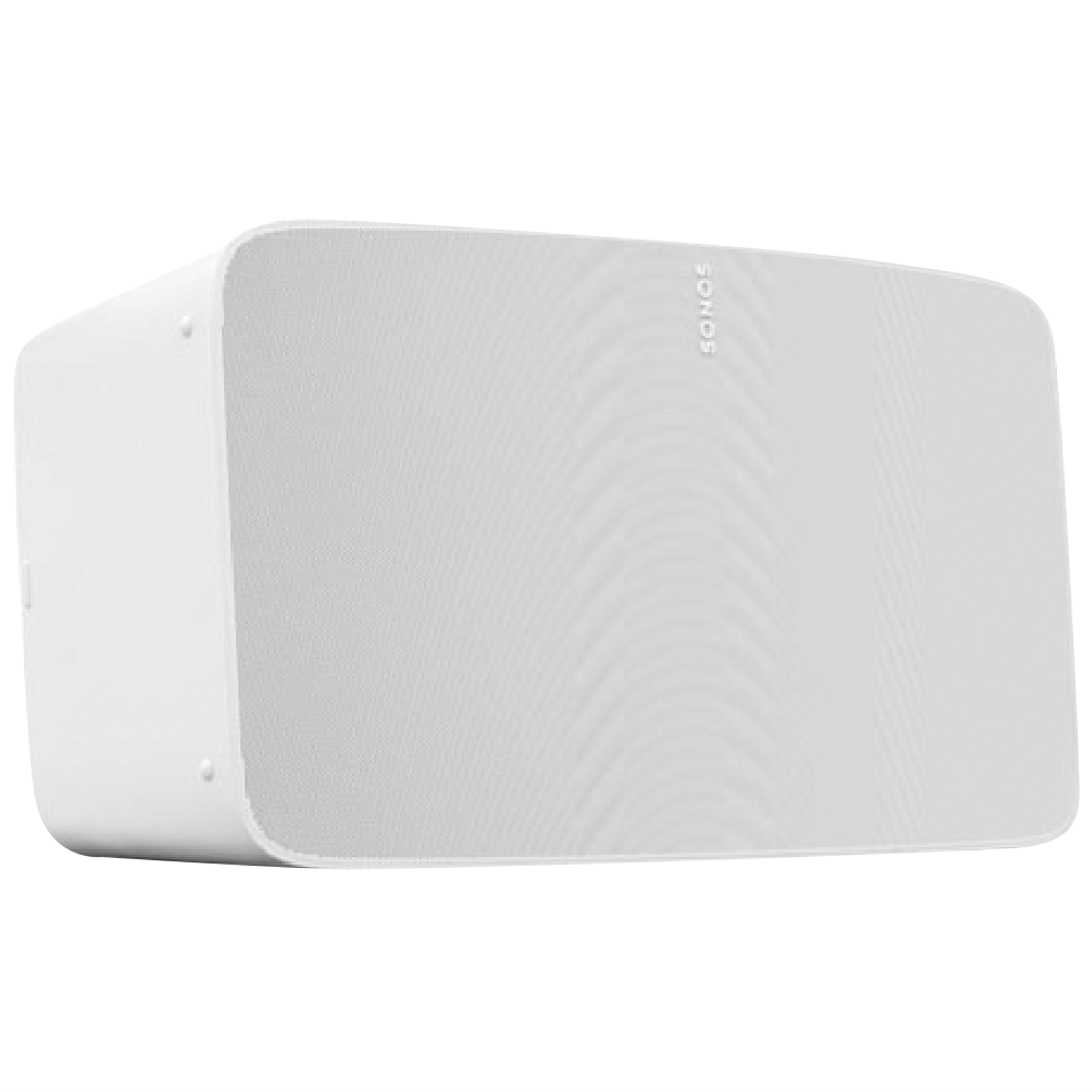 Bring the ultimate wireless home audio experience into your living space with the Sonos Five White smart speaker. With its sleek matte white design this WiFi-enabled speaker fills rooms with pure immersive sound for all your entertainment. Connect via the Sonos app and enjoy crisp vocals deep bass and clear highs as you stream music radio podcasts and more in high resolution audio quality. Designed to sit or mount flexibly the Five delivers a powerful audio performance and looks great anywhere. Control it all easily via app AirPlay 2 and your voice - this speaker works with Amazon Alexa and Google Assistant. The Five connects wirelessly to your home WiFi network and other Sonos speakers letting you build a multi-room audio system for whole-home listening. It also has a 3.5mm aux input to connect other audio devices. Measuring 203 x 364 x 154mm the Sonos Five White speaker comes with a power cable and quick start guide in the box so you can start listening right away. With a one year warranty this wireless speaker will keep the music flowing in any room. The manufacturer's part number for this product is FIVE1AU1. Bring premium wireless sound into your home with the Sonos Five White speaker today.