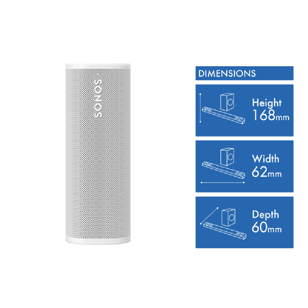 Experience portable high-quality sound with the sleek Sonos Roam 2 - White. This compact wireless speaker delivers powerful audio wherever your adventures take you. Stream your favourite tunes via Bluetooth or WiFi connectivity for seamless listening at home or on the go. The durable lightweight design makes it easy to bring along to the beach park or backyard barbecue. Enjoy up to 10 hours of continuous playback on a single charge ensuring the music keeps going as long as you do. The minimalist white finish adds a touch of style to any setting. ROAM2R21 is the manufacturer's part number for this product. Take your audio experience to new heights with the Sonos Roam 2 - White.