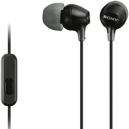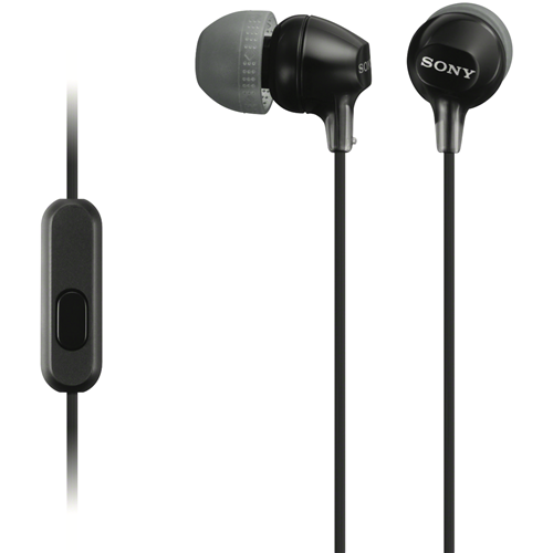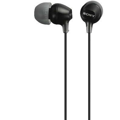 These black Sony headphones are in-ear headphones. Their 8 Hz - 22 kHz frequency response helps you make out deep lows and sharp treble tones. Take a music stay-cay with these Sony headphones.