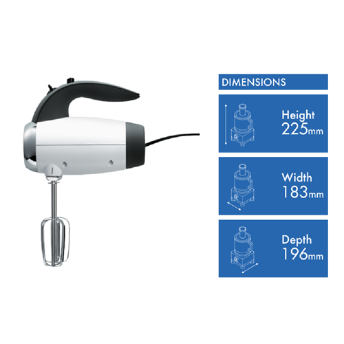 Blend whisk and knead with ease using the versatile Sunbeam Mixmaster 235W Hand Held Mixer. This stylish white hand mixer features variable speed settings to tackle any mixing task. The quick release eject button allows for fast and easy attachment changes between the included accessories: two V-groove beaters two balloon whisks and two dough hooks. Whether you're whipping egg whites into fluffy peaks or kneading a sticky dough the 235 watt motor provides consistent power and performance. The dishwasher safe beaters ensure effortless cleanup after baking your favorite recipes. With a 1 year warranty and compact size under 10 inches tall the Sunbeam Mixmaster Hand Mixer delivers power and versatility in a portable package. The manufacturer's part number for this product is JM6600. Seize the opportunity to upgrade your baking experience with this innovative hand mixer.