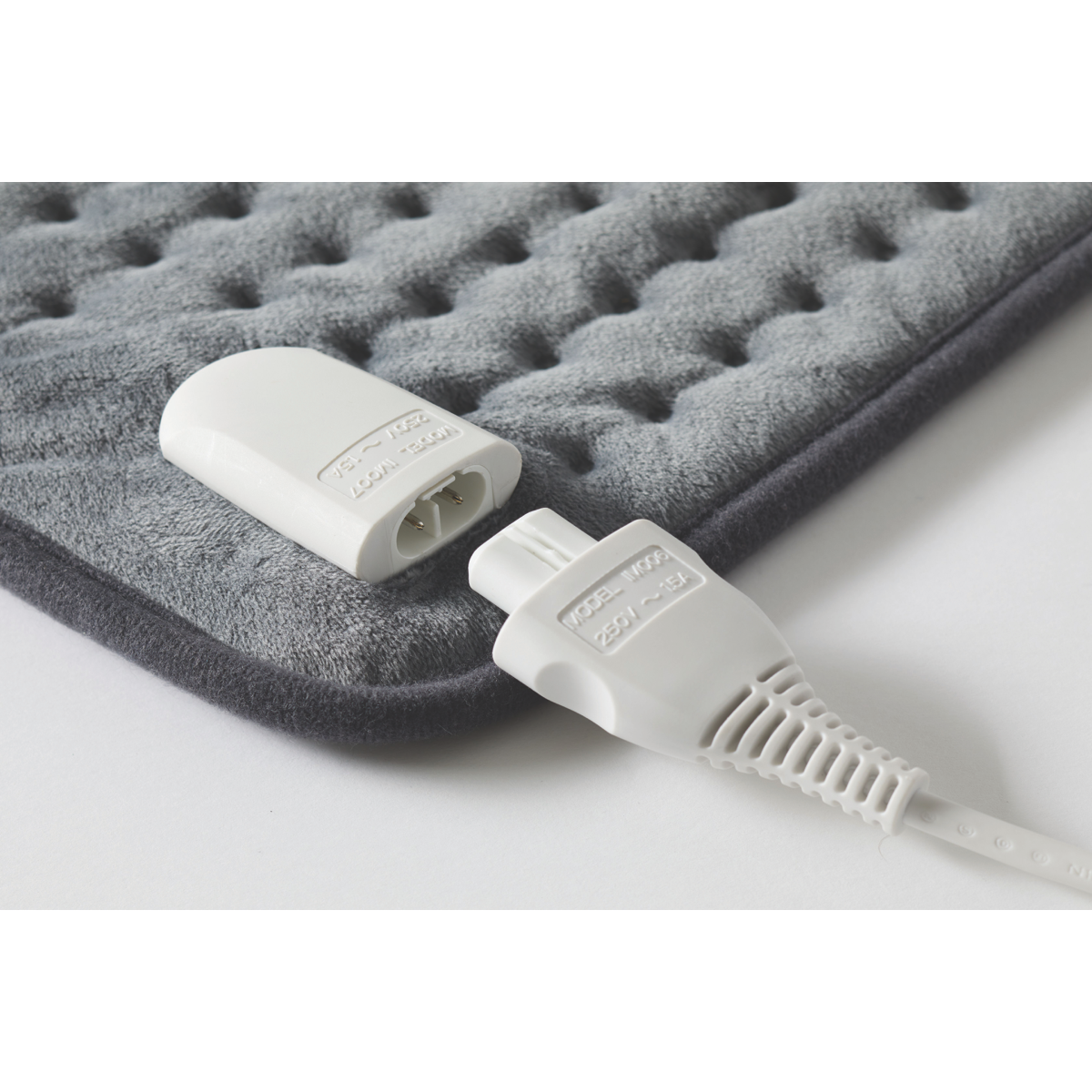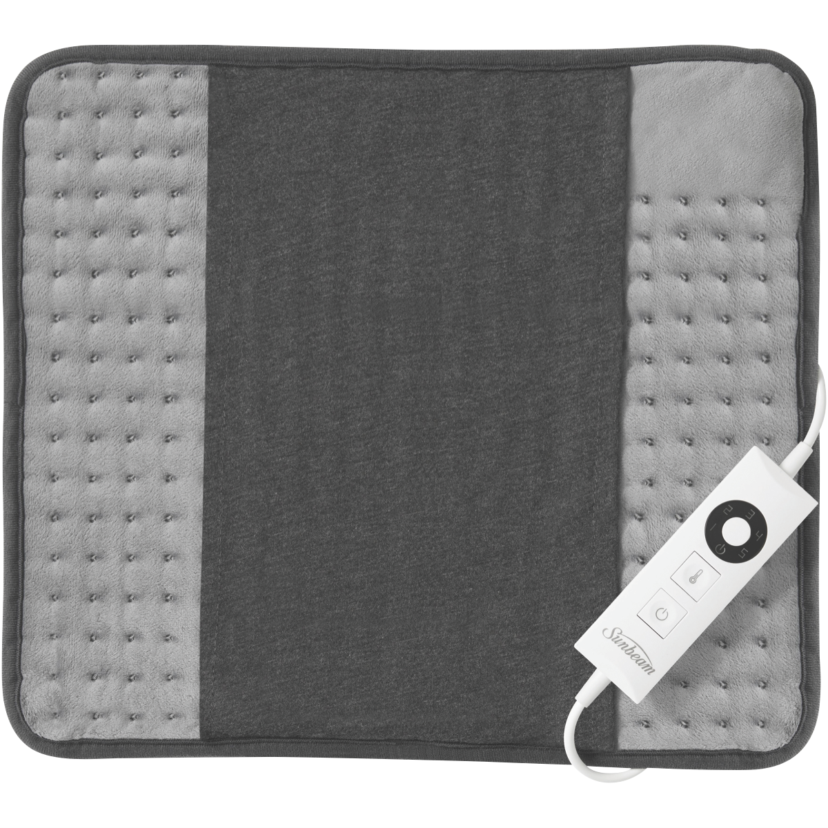Relax and soothe aches and pains with the Sunbeam Multi Purpose Heating Pad. This grey heating pad features Intellisense Technology that heats up in just 90 seconds along with 5 variable heat settings to tailor soothing warmth to your needs. The soft velvety fabric construction delivers gentle heat that relieves tension in targeted areas. Built-in auto shut off provides peace of mind turning off automatically after 3 hours of continuous use. With a 110W heating element attached controller sleeve and machine washable fabric this heating pad makes it easy to apply therapeutic warmth when and where you need it. Measuring 350 x 400mm and weighing just 0.5kg the lightweight pad conforms comfortably to the body. Backed by a 2 year manufacturer's warranty the Sunbeam Multi Purpose Heating Pad provides safe simple pain relief and relaxation. The manufacturer's part number for this product is HPM5000. Give your body the healing warmth it deserves with this multi-purpose heating pad.