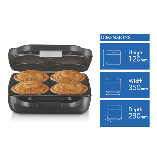 Additional Features 12cm pie diameter, Can also cook store bought pies, Cast In Element, Crimper Seal, Deep Plates, Vertical Storage